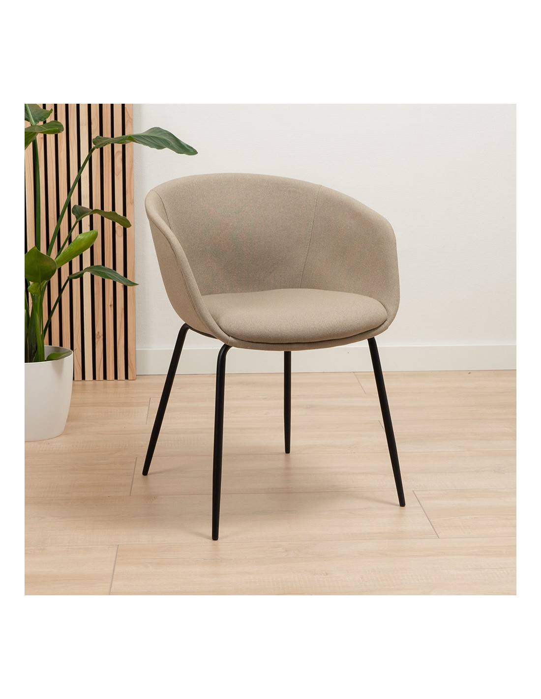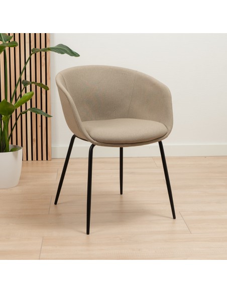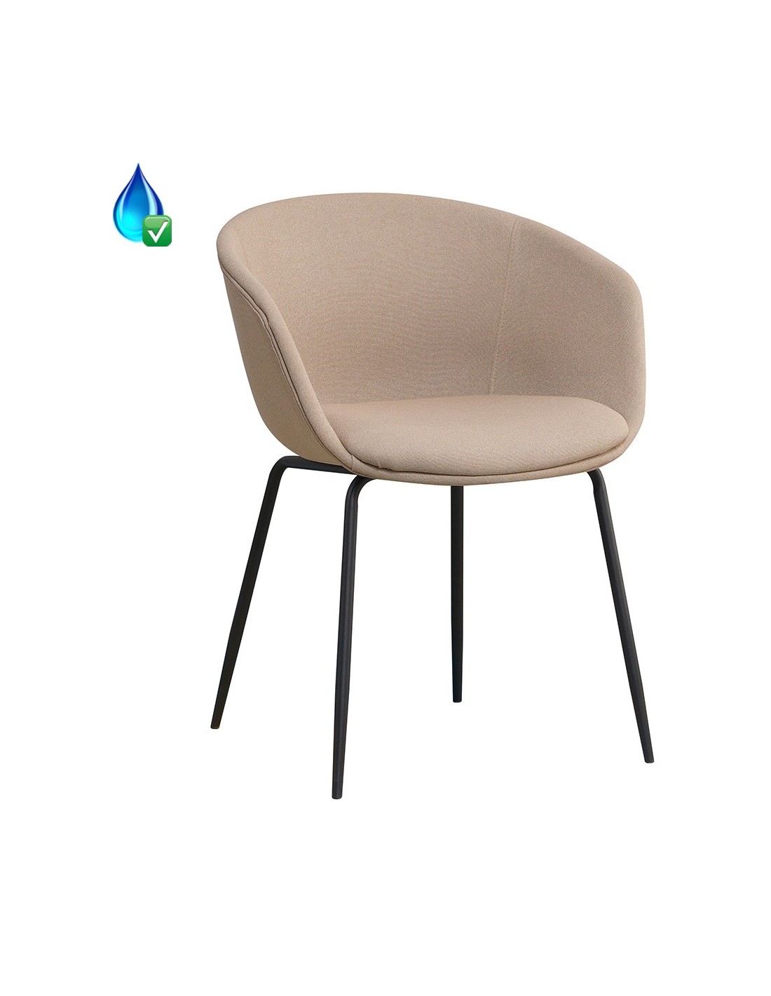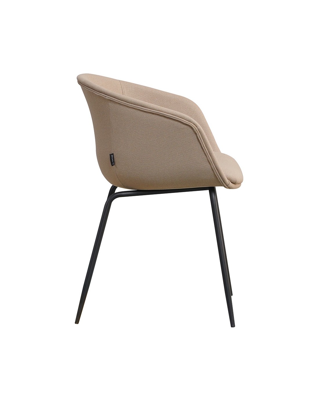 Ole spisebordsstol udført i et moderne design, fremstillet med sæde i taupefarvet genanvendt polyester og ben i sortlakeret metal. Stolen måler 83 cm i højden over ryggen og med siddehøjde på 49 cm. Tekstilen er vandafvisende og med martindale 50.000, som gør stolen særligt anvendelig til restaurationer/spisesteder.
