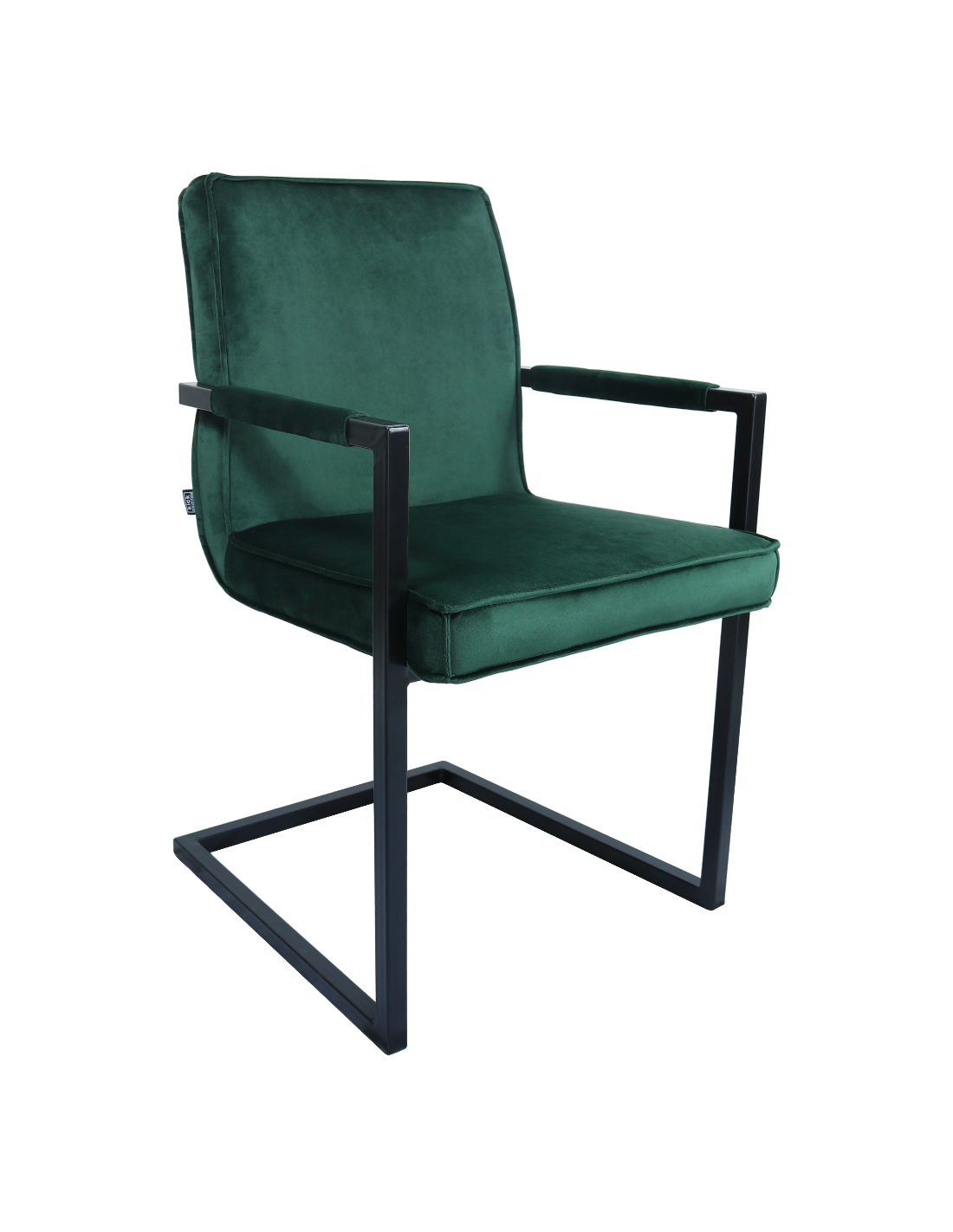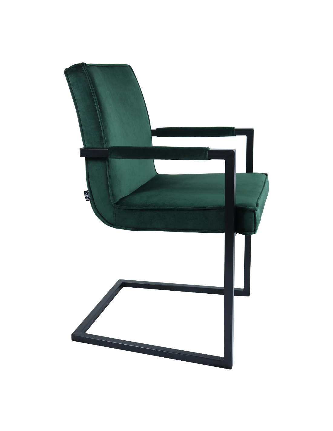 Jim spisebordsstol i metal og velour H90 cm - Sort/Mørkegrøn