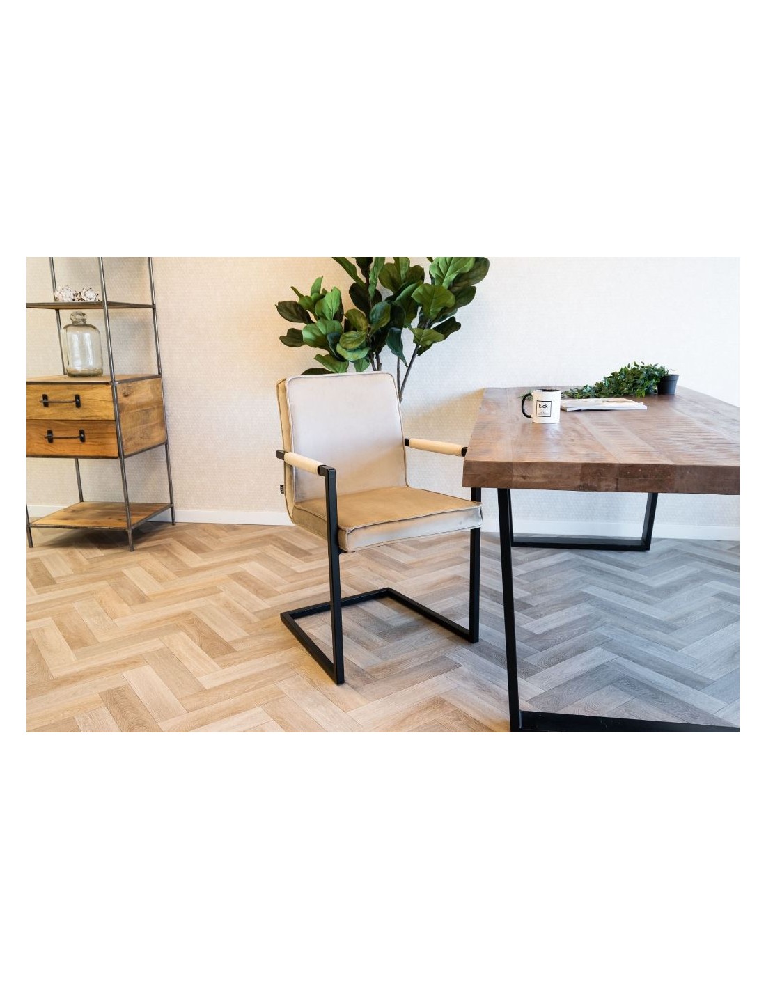 Jim spisebordsstol i metal og velour H90 cm - Sort/Champagne