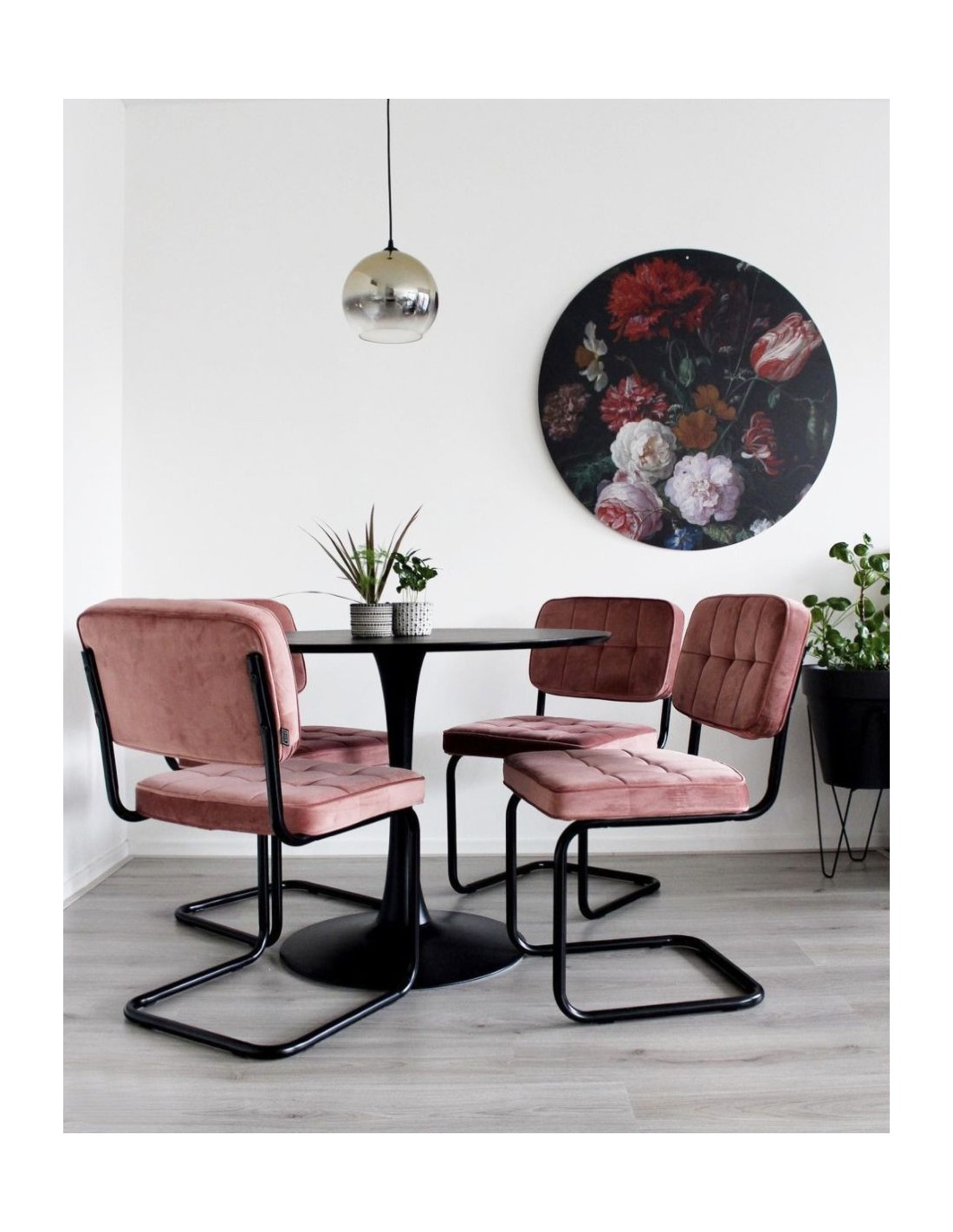 Ivy spisebordsstol i metal og velour H84 cm - Sort/Rosa