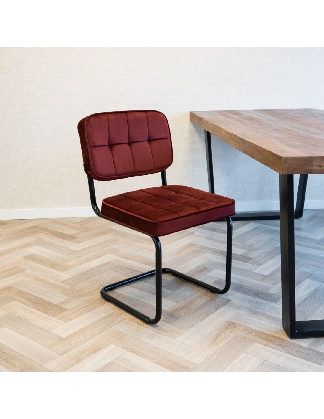 Ivy spisebordsstol i metal og velour H84 cm - Sort/Mørkerød