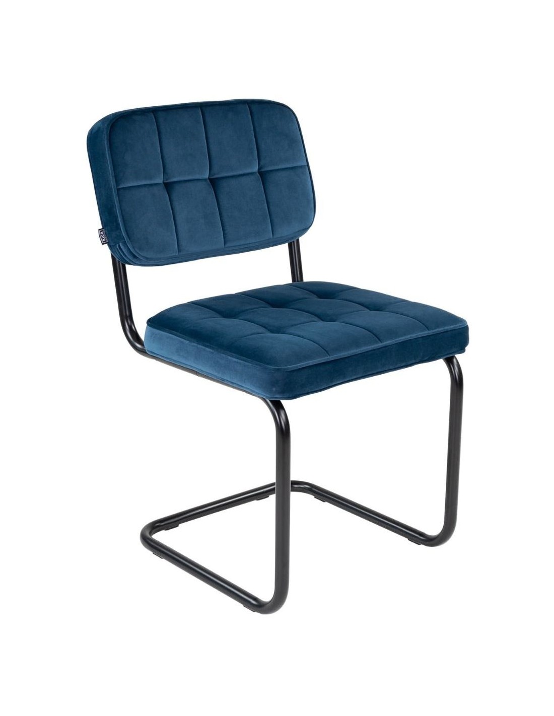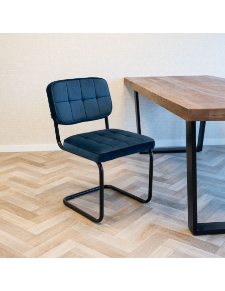 Ivy spisebordsstol i metal og velour H84 cm - Sort/Mørkeblå