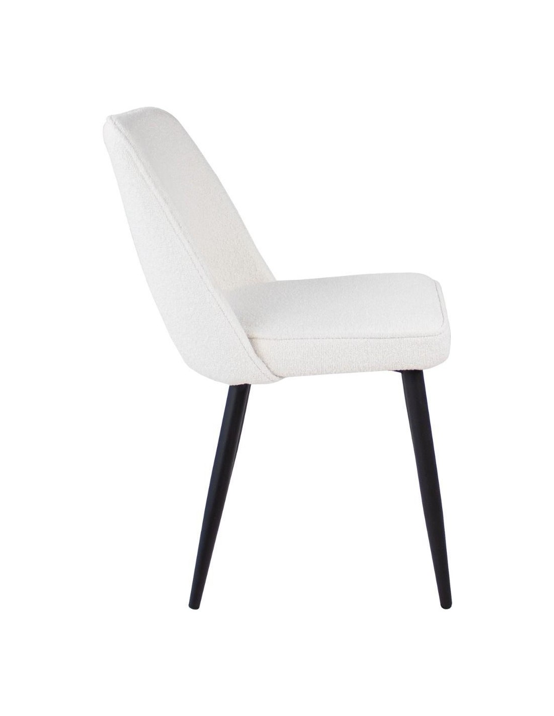 Spisebordsstol udført i et design af metal og bouclé polyester. Stolen måler 80 cm i højden over ryggen og 49 cm i siddehøjde.