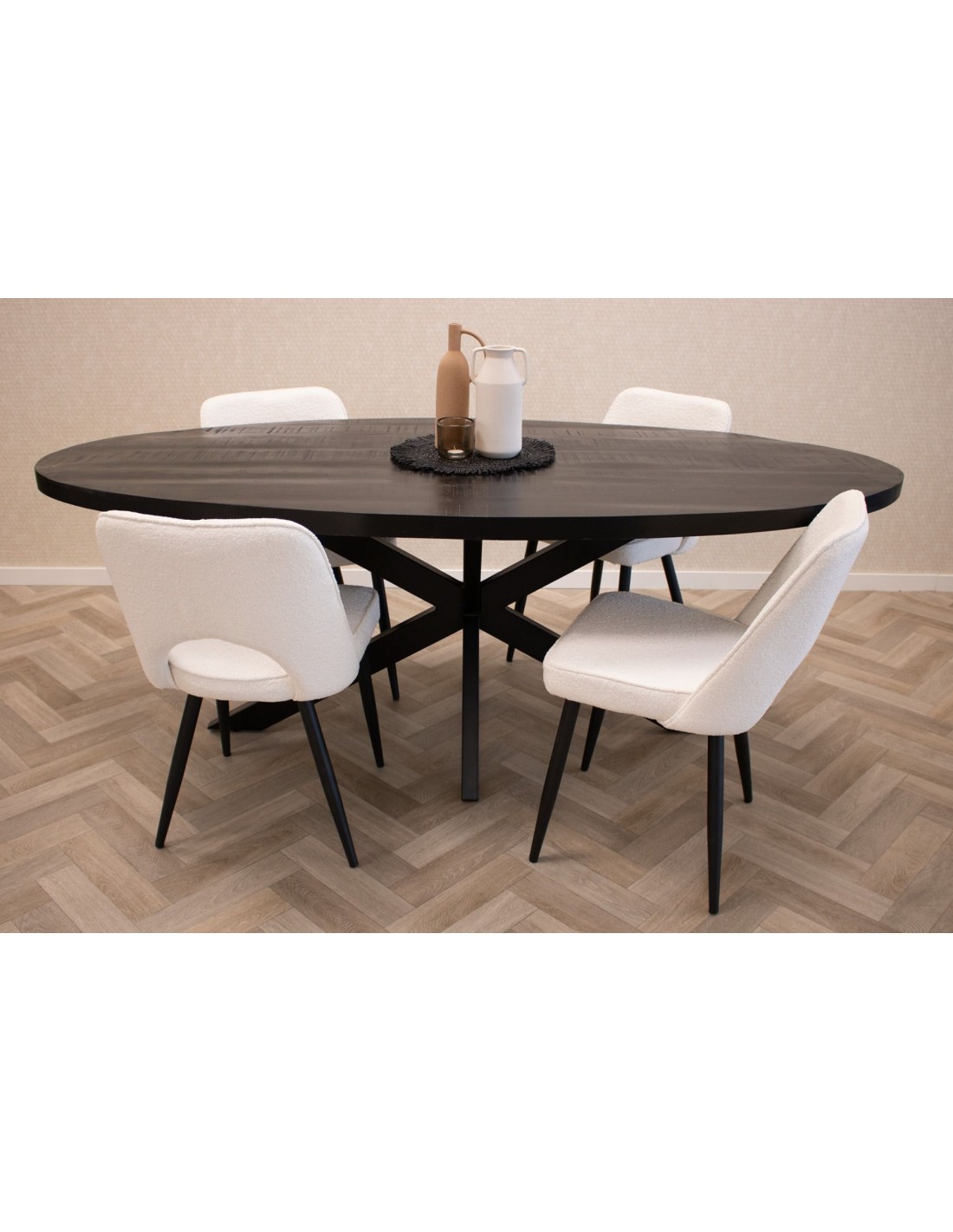 Mare spisebordsstol i metal og bouclé H80 cm - Sort/Hvid