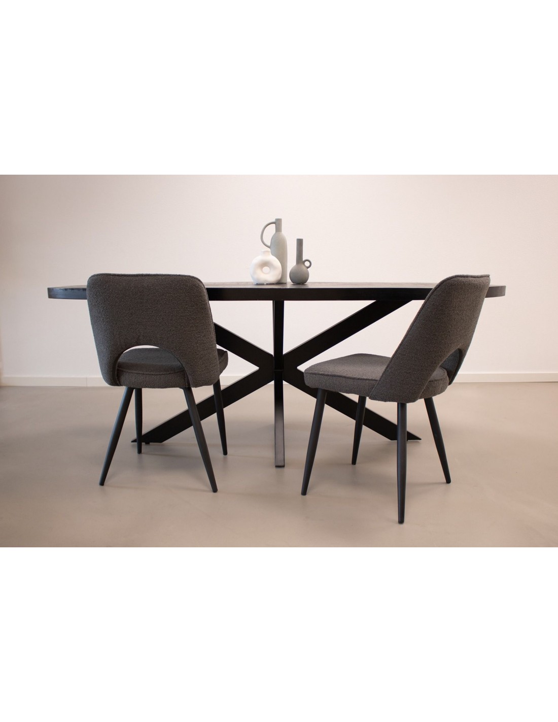 Mare spisebordsstol i metal og bouclé H80 cm - Sort/Mørkegrå