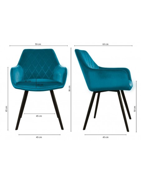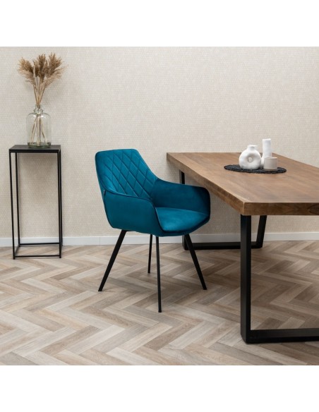Karl spisebordsstol i metal og velour H86 cm - Sort/Blå