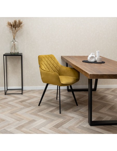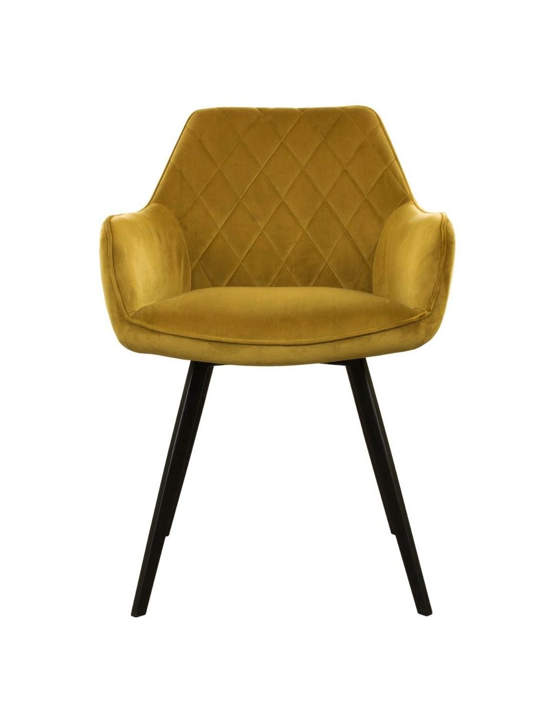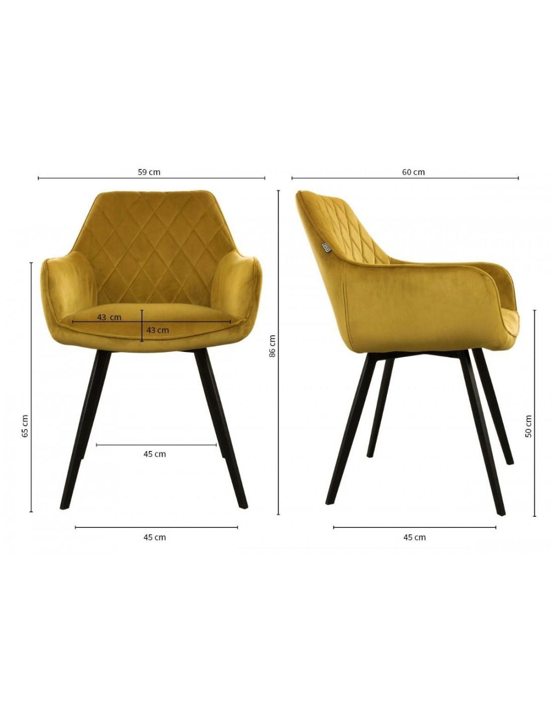 Spisebordsstol udført i et design af metal og velour. Stolen måler 86 cm i højden over ryggen og 50 cm i siddehøjde.