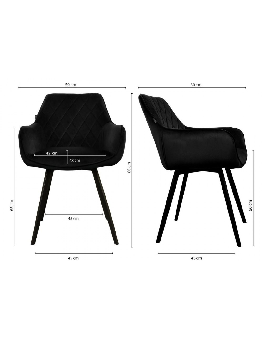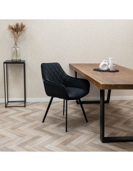 Karl spisebordsstol i metal og velour H86 cm - Sort/Sort