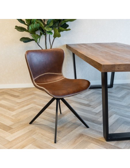 Enzo spisebordsstol i metal og PU-læder H79 cm - Sort/Brun
