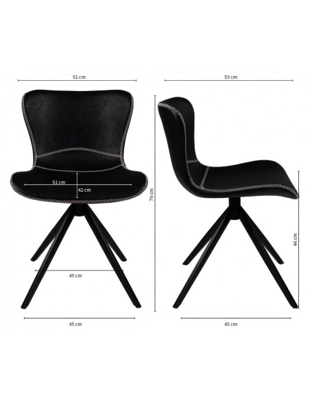 Spisebordsstol udført i et design af metal og PU-læder. Stolen måler 79 cm i højden over ryggen og 46 cm i siddehøjde.