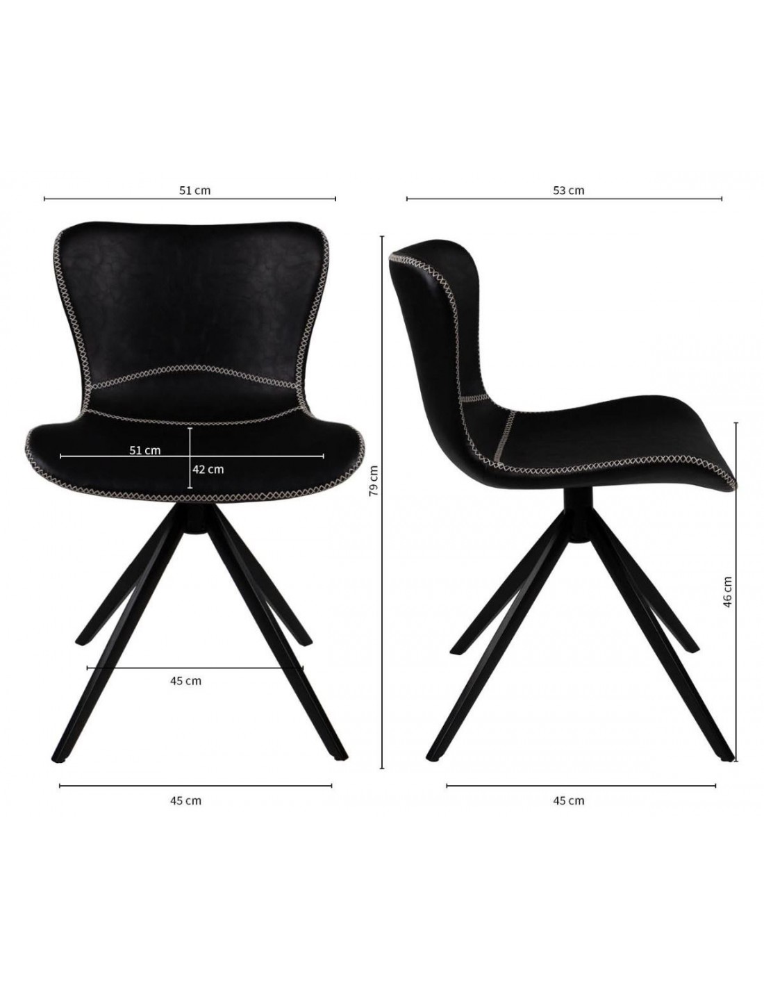 Enzo spisebordsstol i metal og PU-læder H79 cm - Sort/Sort