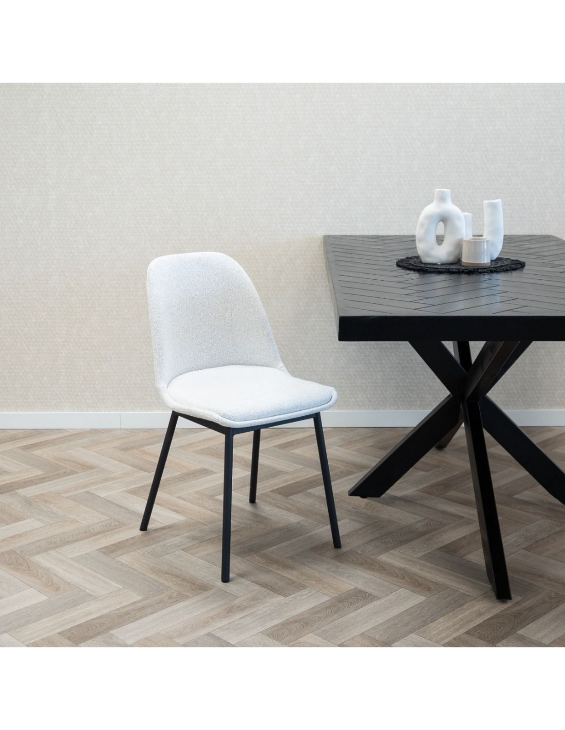 Lana spisebordsstol i metal og polyester H83 cm - Sort/Hvid