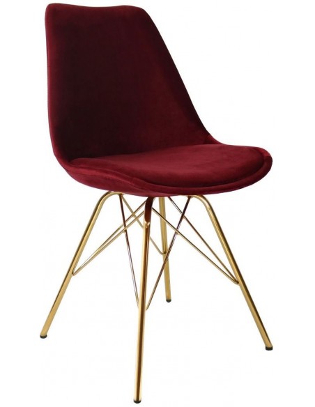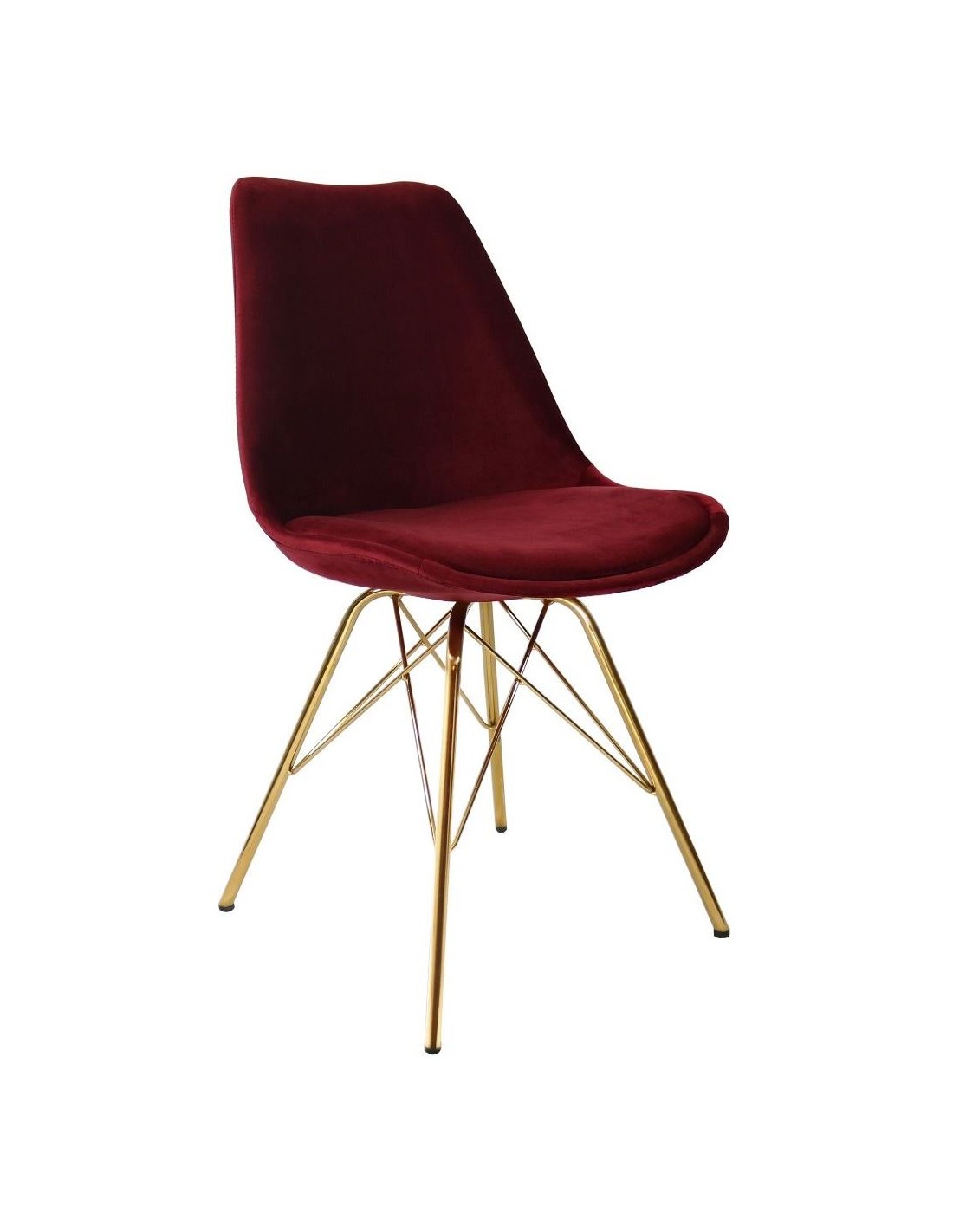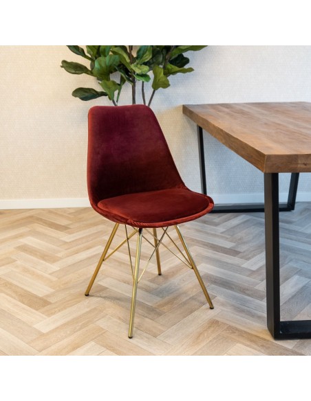 Bucket spisebordsstol i metal og velour H85 cm - Guld/Mørkerød