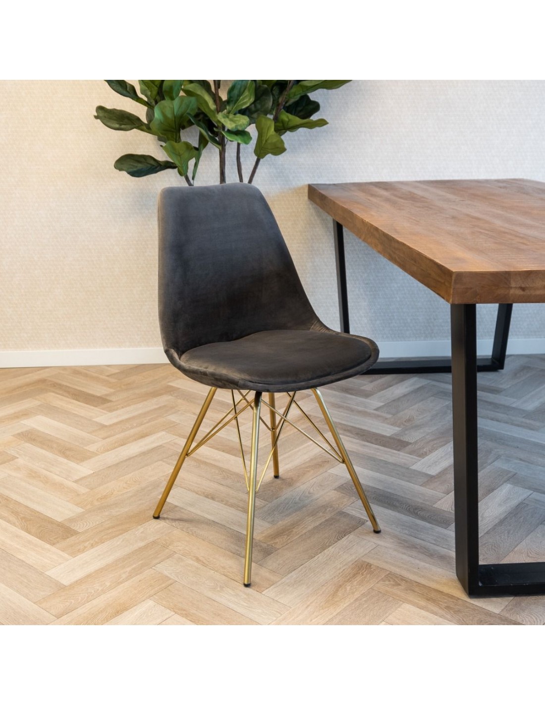 Bucket spisebordsstol i metal og velour H85 cm - Guld/Mørkegrå