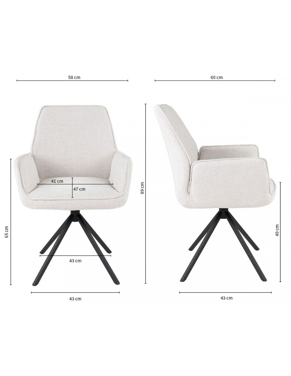 • Armlænshøjde fra gulv: 65 cm