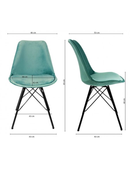 Bucket spisebordsstol i metal og velour H85 cm - Sort/Mint