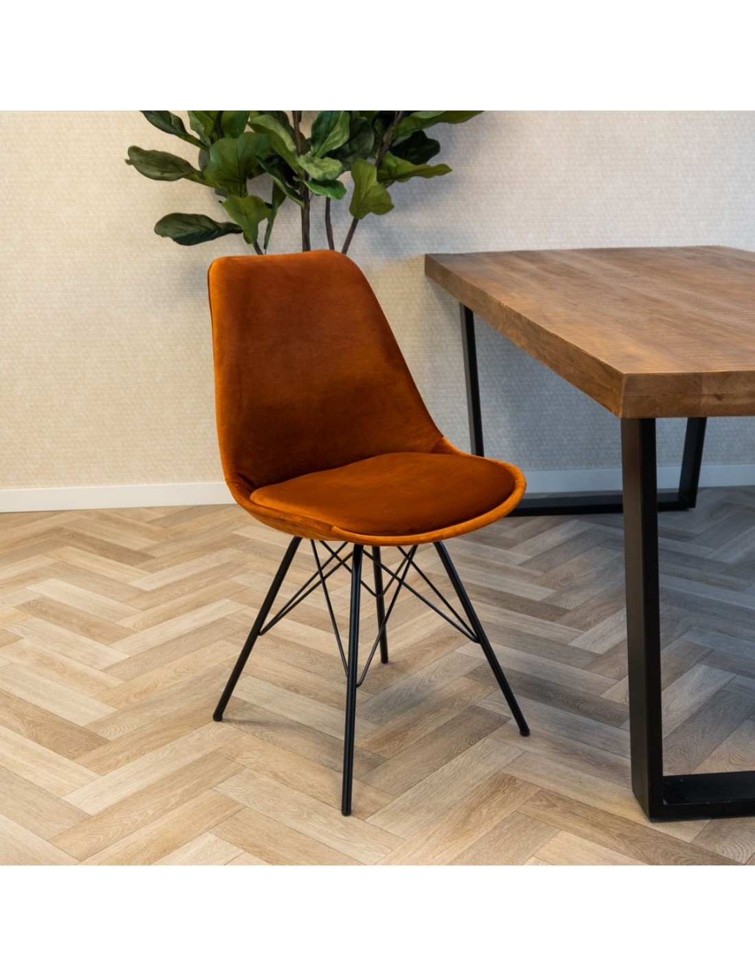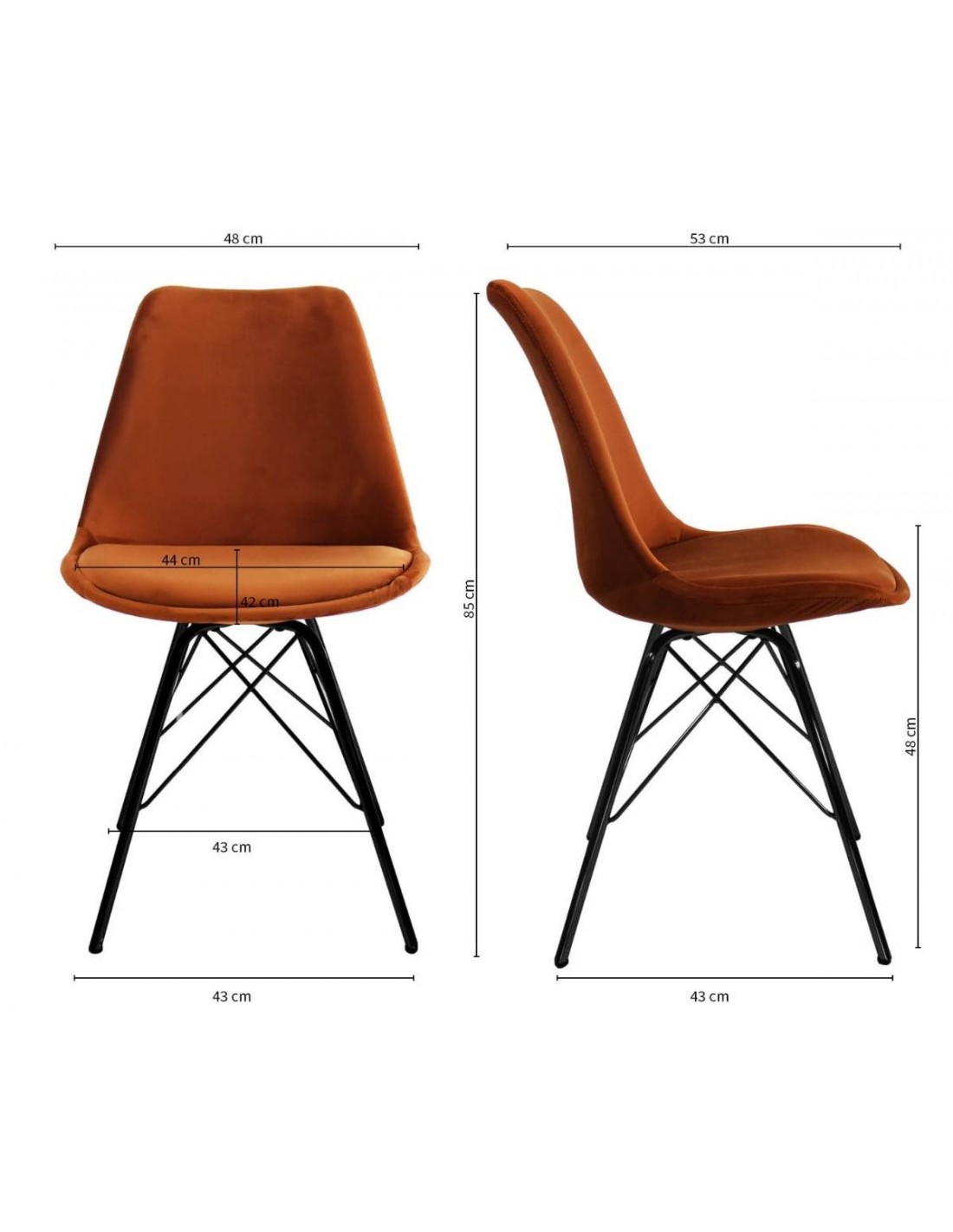Bucket spisebordsstol i metal og velour H85 cm - Sort/Orange
