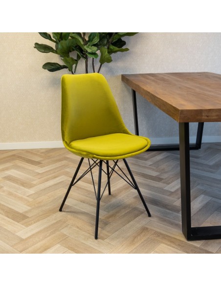 Bucket spisebordsstol i metal og velour H85 cm - Sort/Grøn
