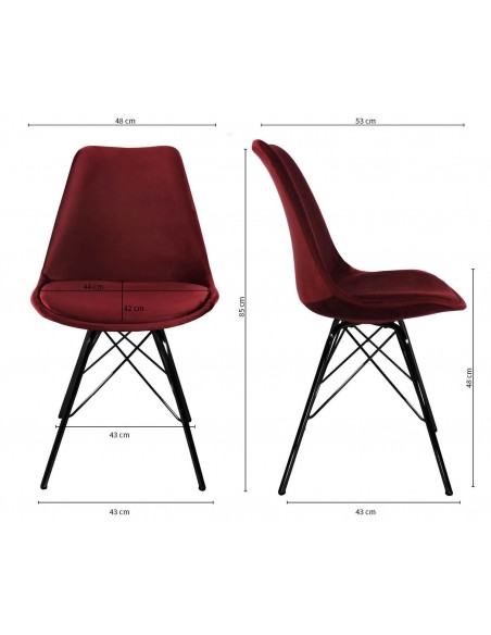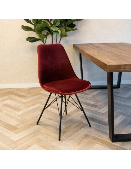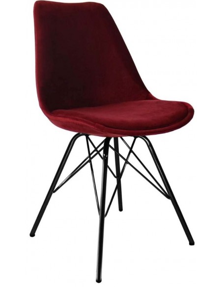 Bucket spisebordsstol i metal og velour H85 cm - Sort/Mørkerød