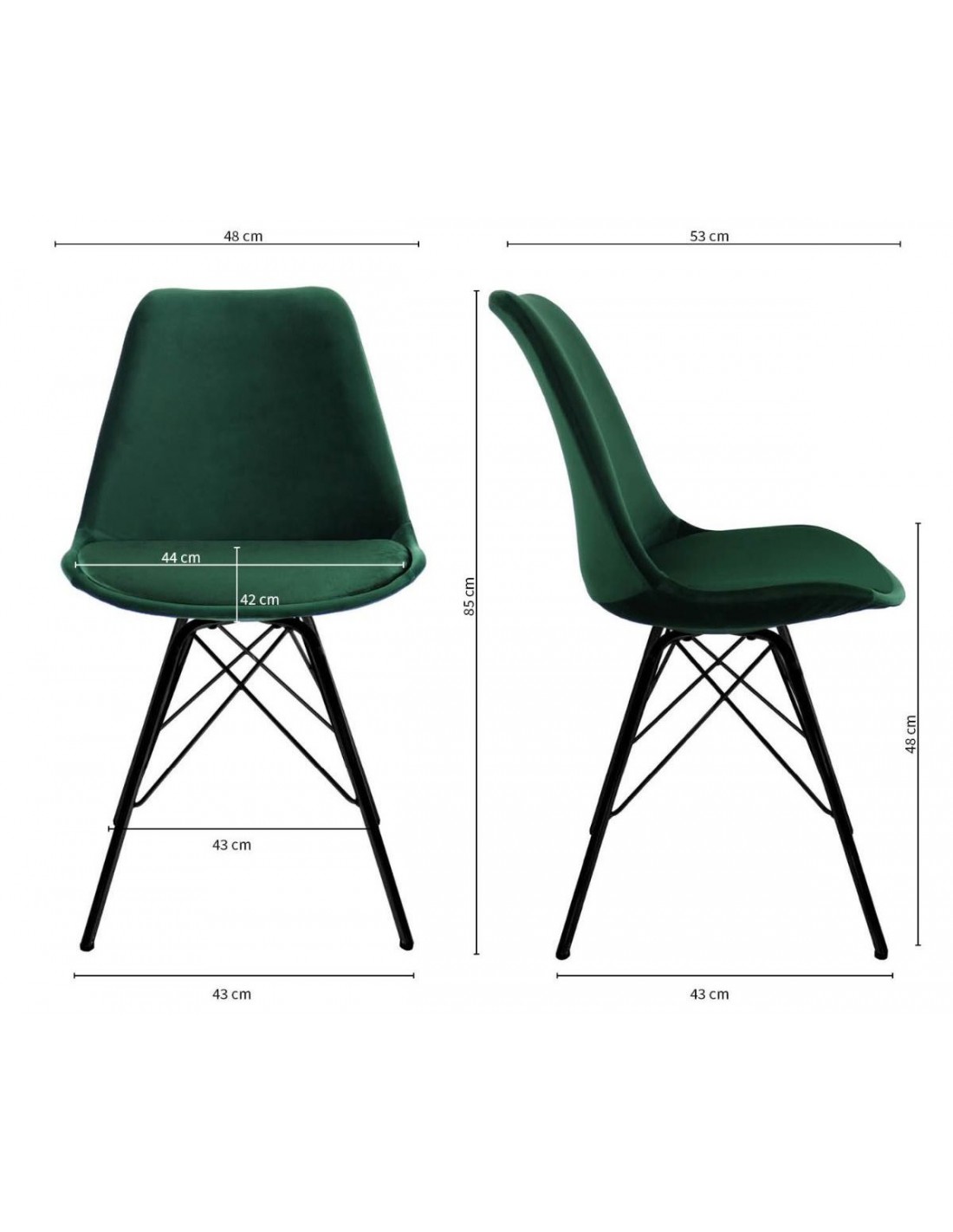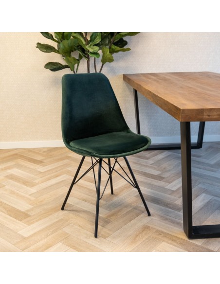 Bucket spisebordsstol i metal og velour H85 cm - Sort/Mørkegrøn