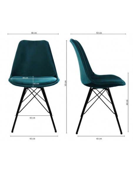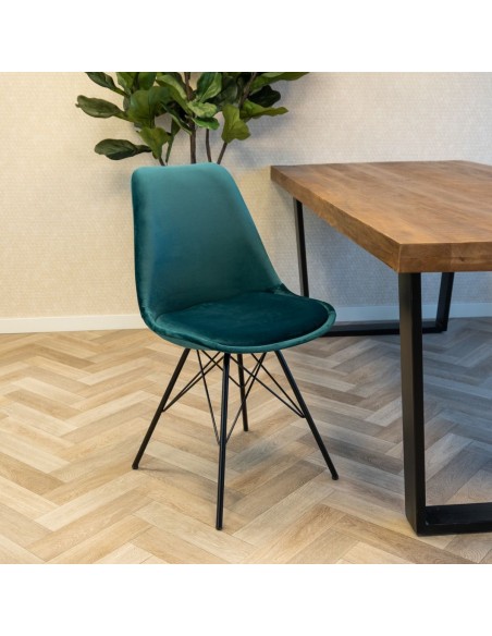 Spisebordsstol udført i et design af metal og velour. Stolen måler 85 cm i højden over ryggen og 48 cm i siddehøjde.