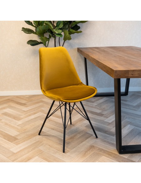 Spisebordsstol udført i et design af metal og velour. Stolen måler 85 cm i højden over ryggen og 48 cm i siddehøjde.