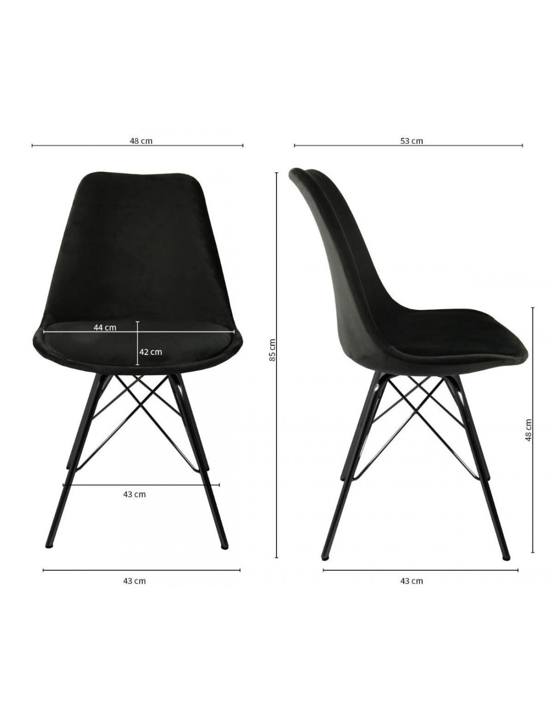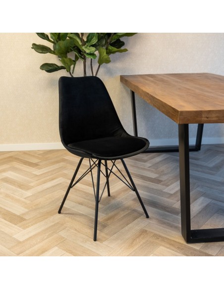 Bucket spisebordsstol i metal og velour H85 cm - Sort/Sort