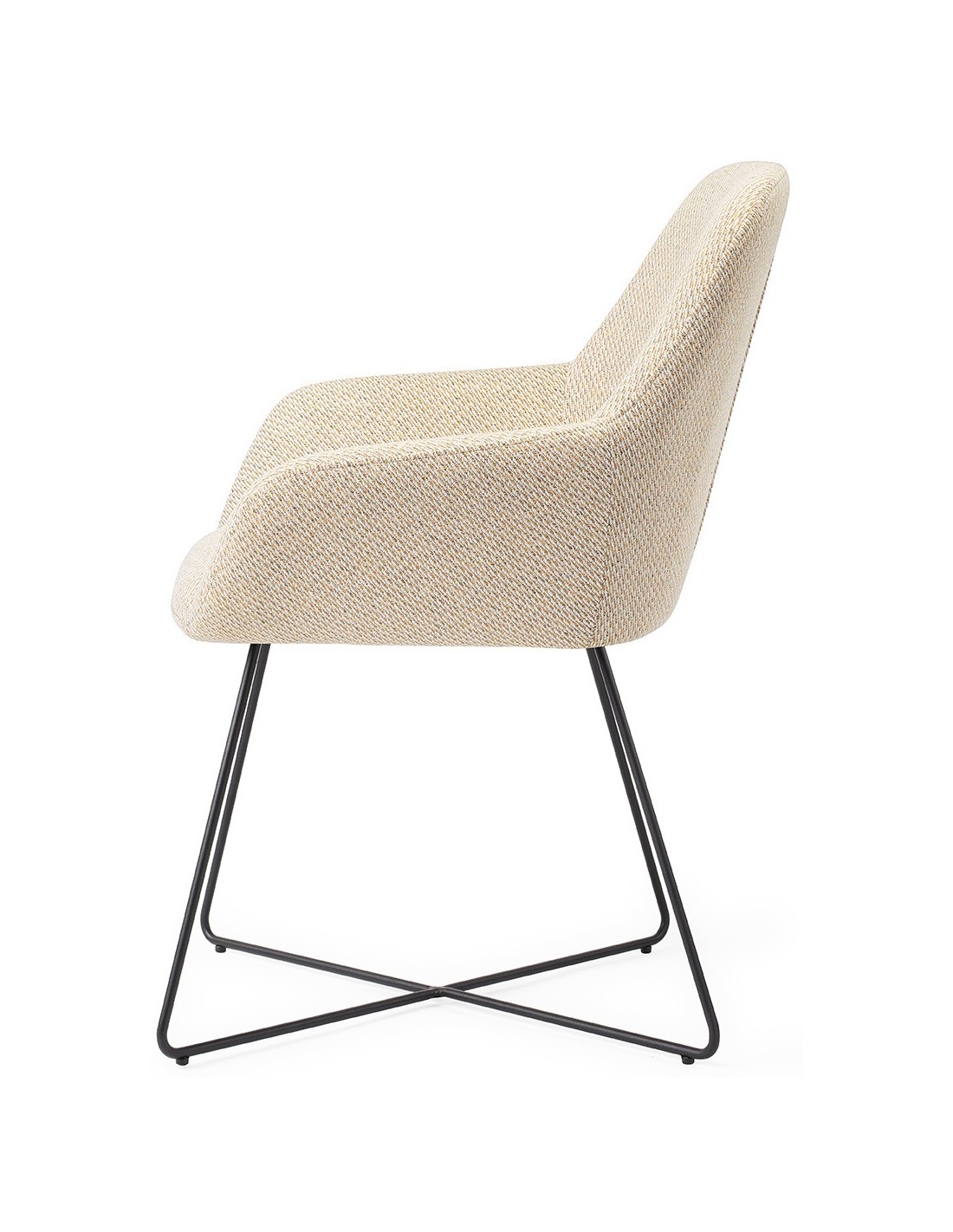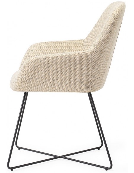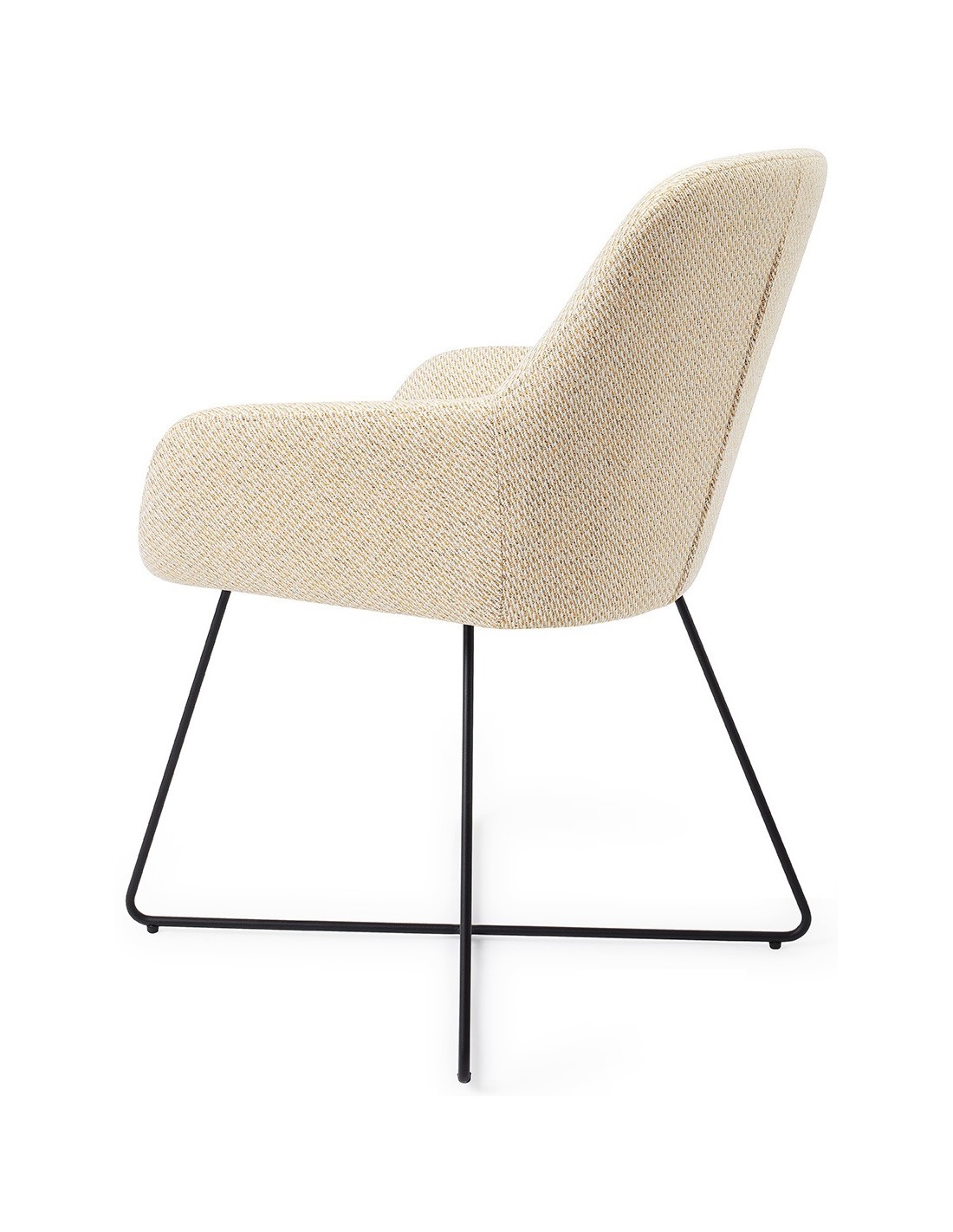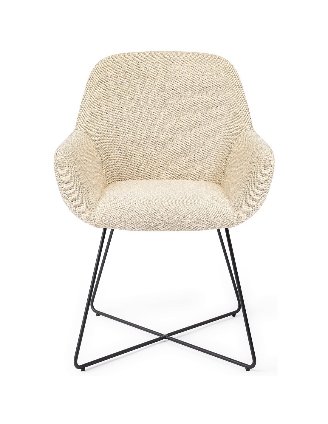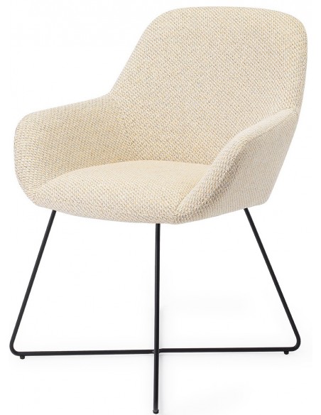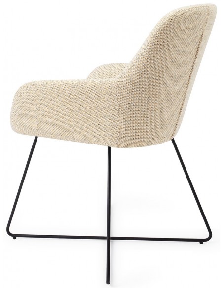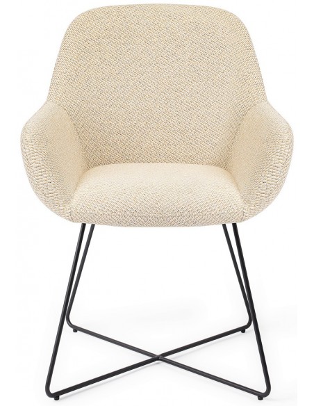 Sæt med 2 Kushi spisebordsstole i et moderne design, fremstillet med sæde i meleret korngul polyester og stel i sortlakeret metal. Stolen måler 84 cm i højden over ryggen og med siddehøjde på 48 cm.
