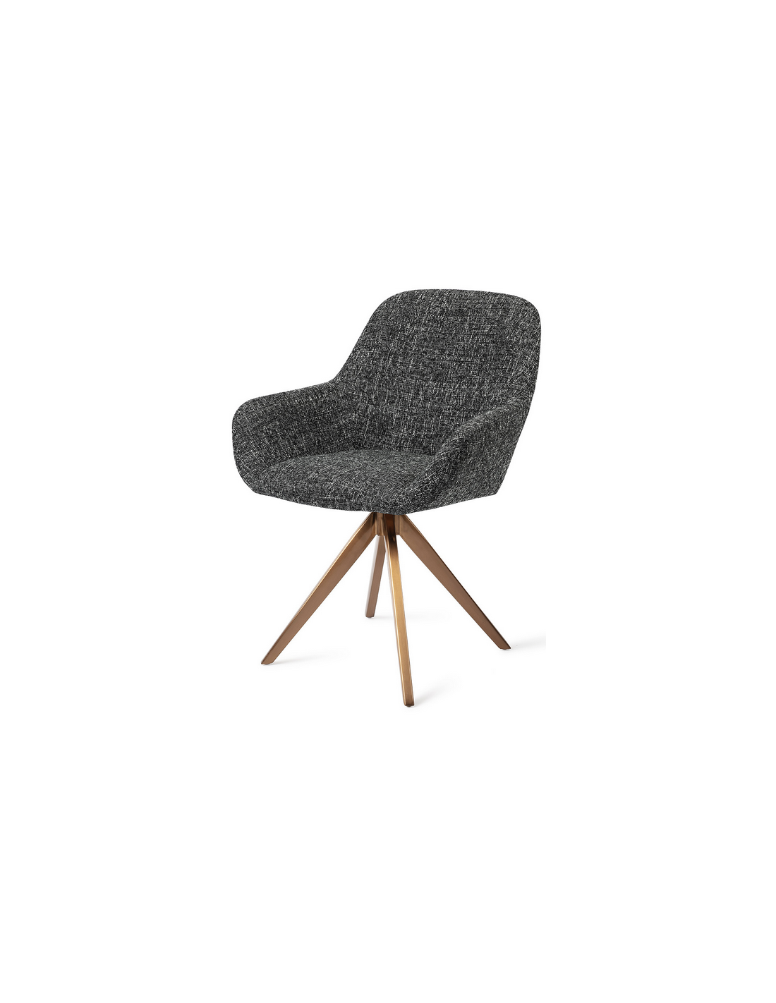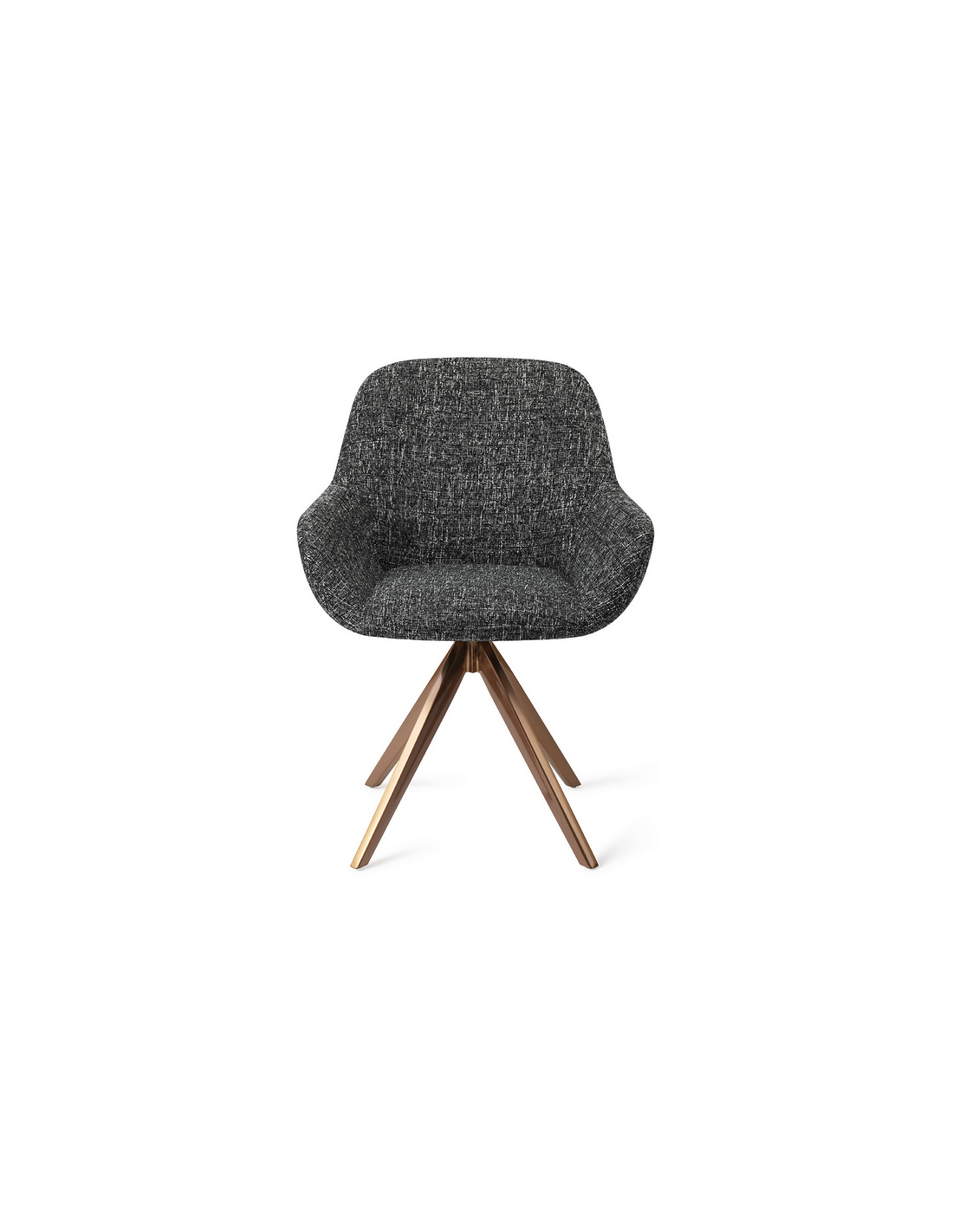 Sæt med 2 Kushi spisebordsstole i et moderne design, fremstillet med sæde i meleret sort polyester og stel i rødguldfarvet metal. Stolen måler 84 cm i højden over ryggen og med siddehøjde på 48 cm. Stellet er rotérbart.