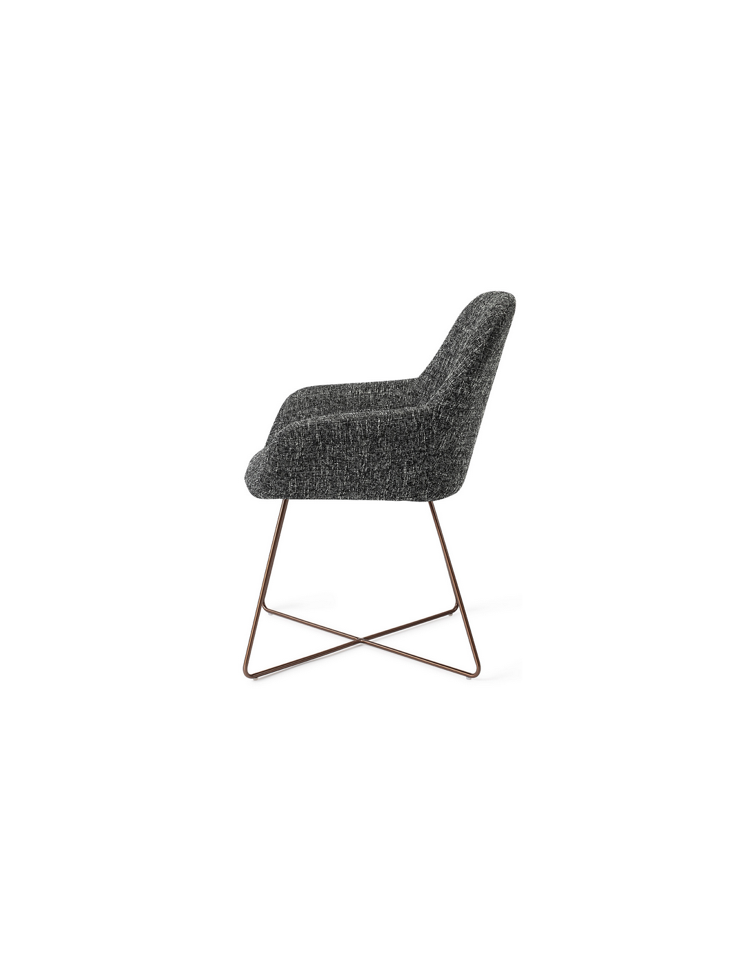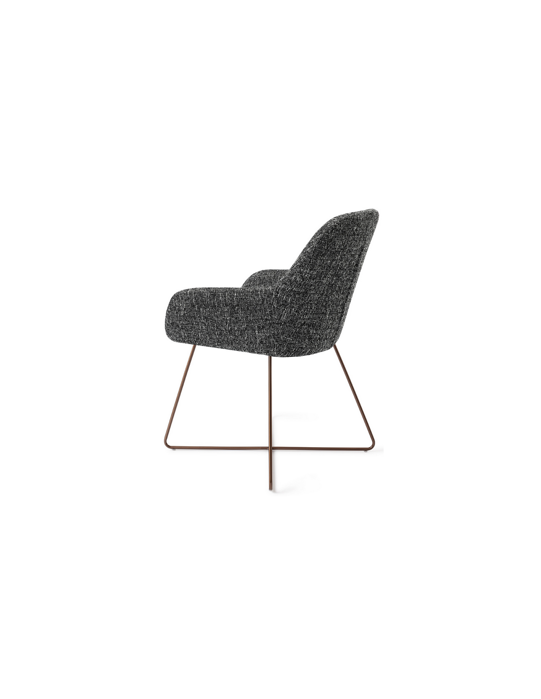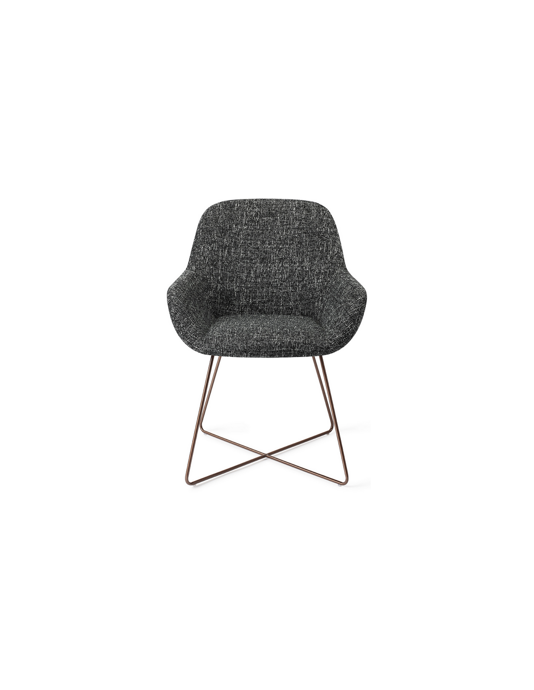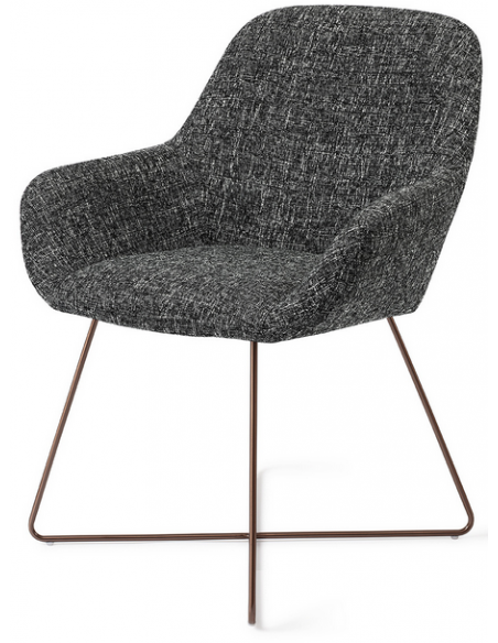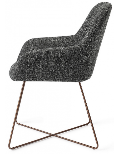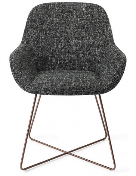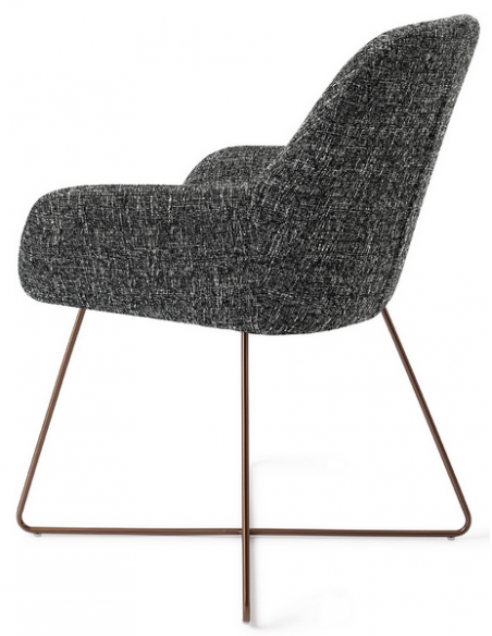 Sæt med 2 Kushi spisebordsstole i et moderne design, fremstillet med sæde i meleret sort polyester og stel i rødguldfarvet metal. Stolen måler 84 cm i højden over ryggen og med siddehøjde på 48 cm.