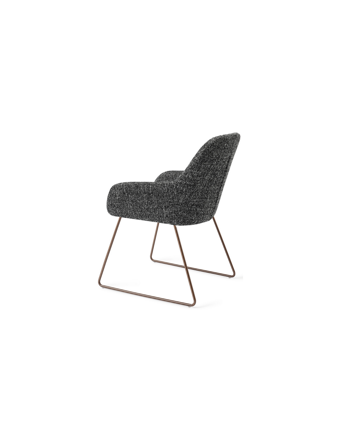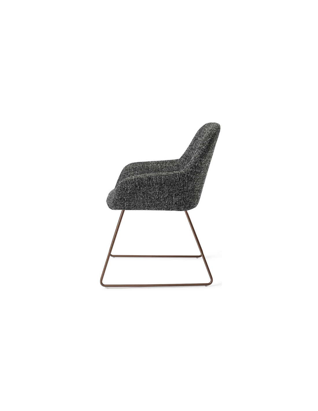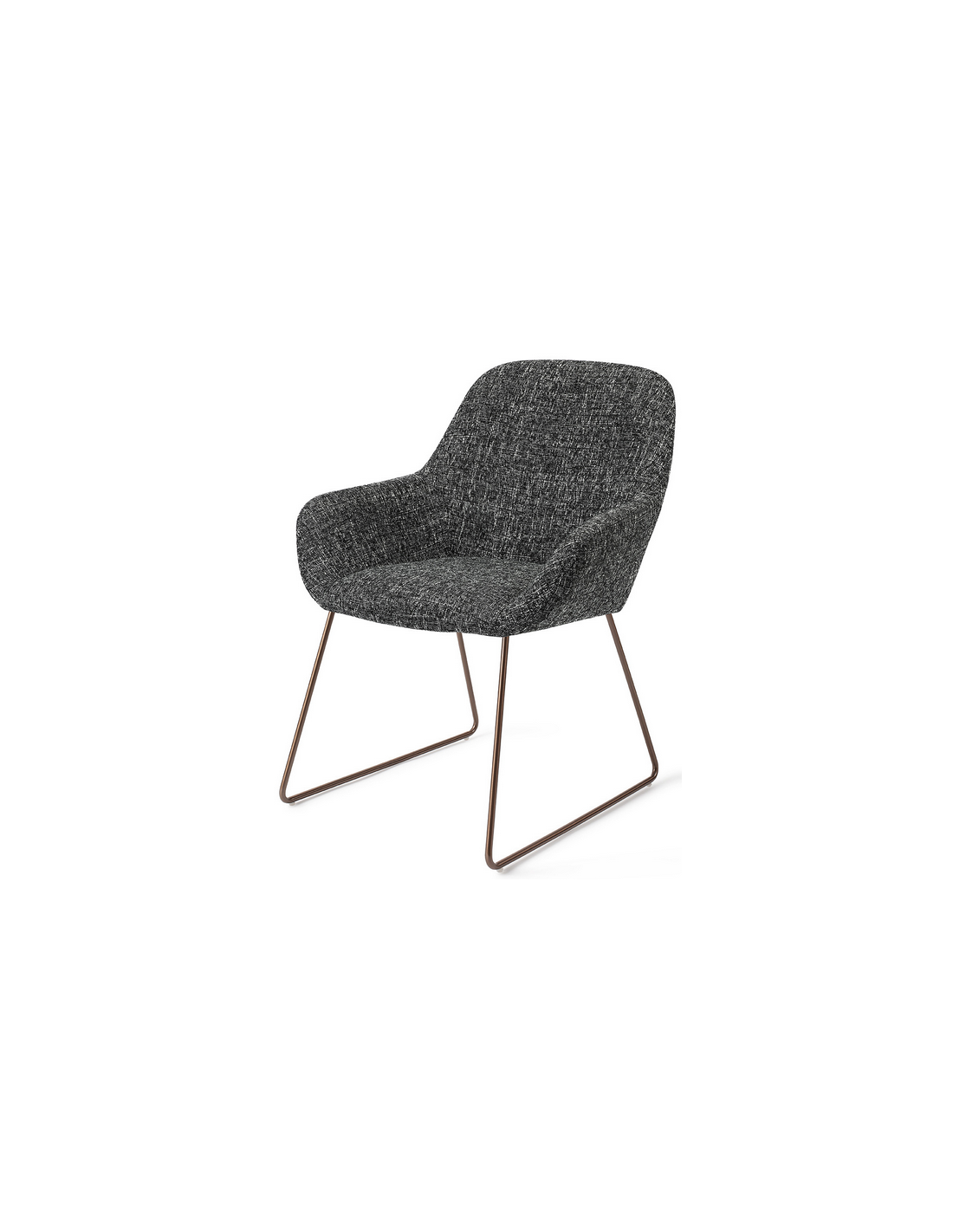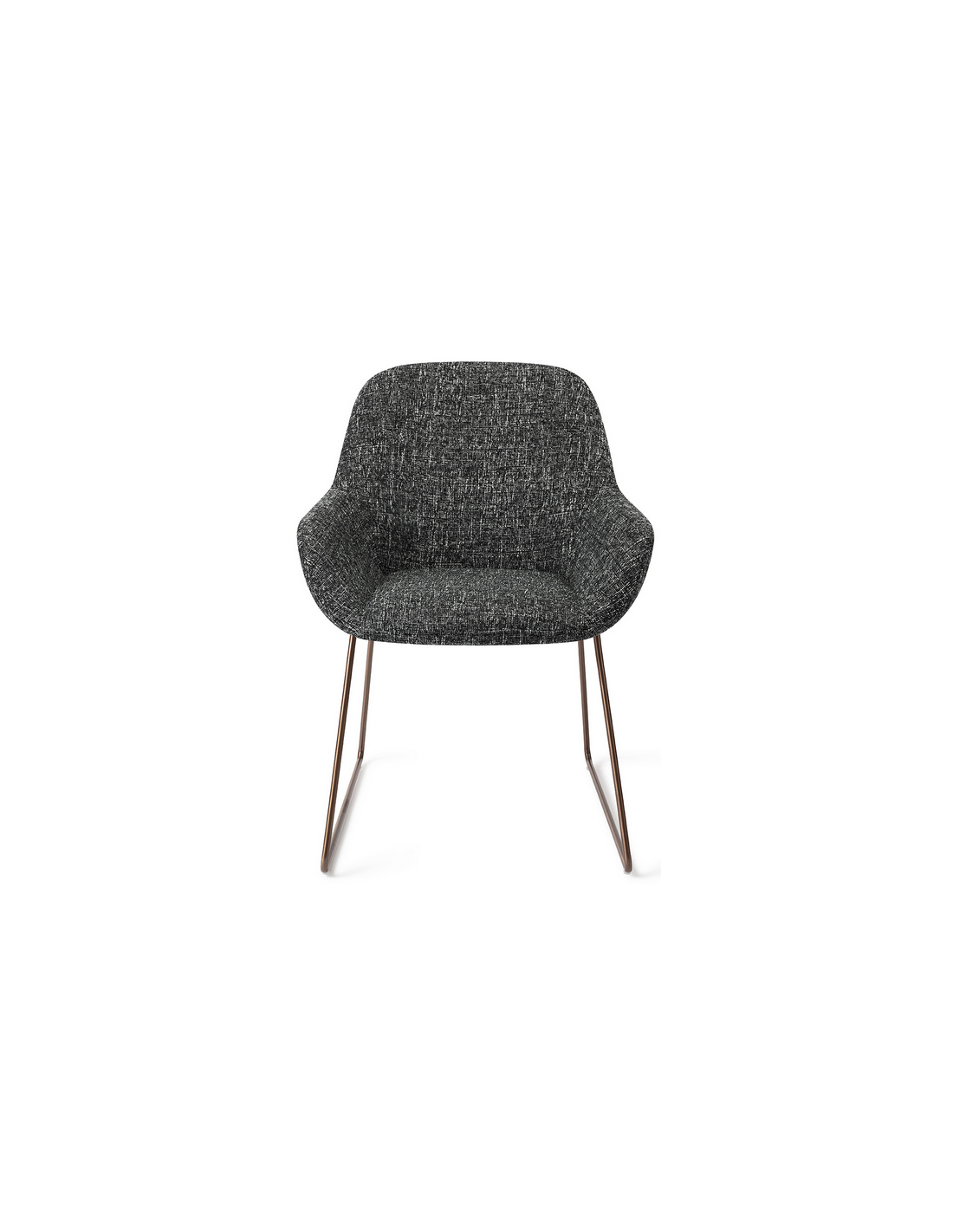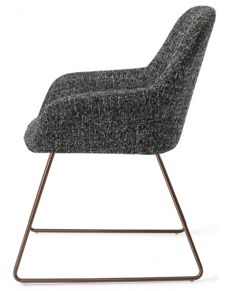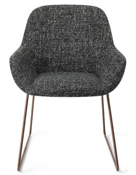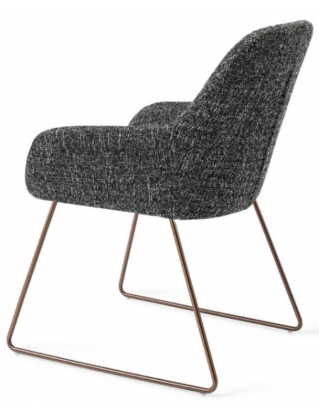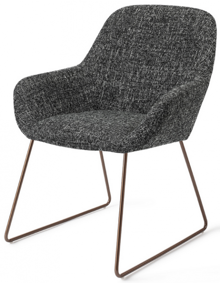 Sæt med 2 Kushi spisebordsstole i et moderne design, fremstillet med sæde i meleret sort polyester og stel i rødguldfarvet metal. Stolen måler 84 cm i højden over ryggen og med siddehøjde på 48 cm.