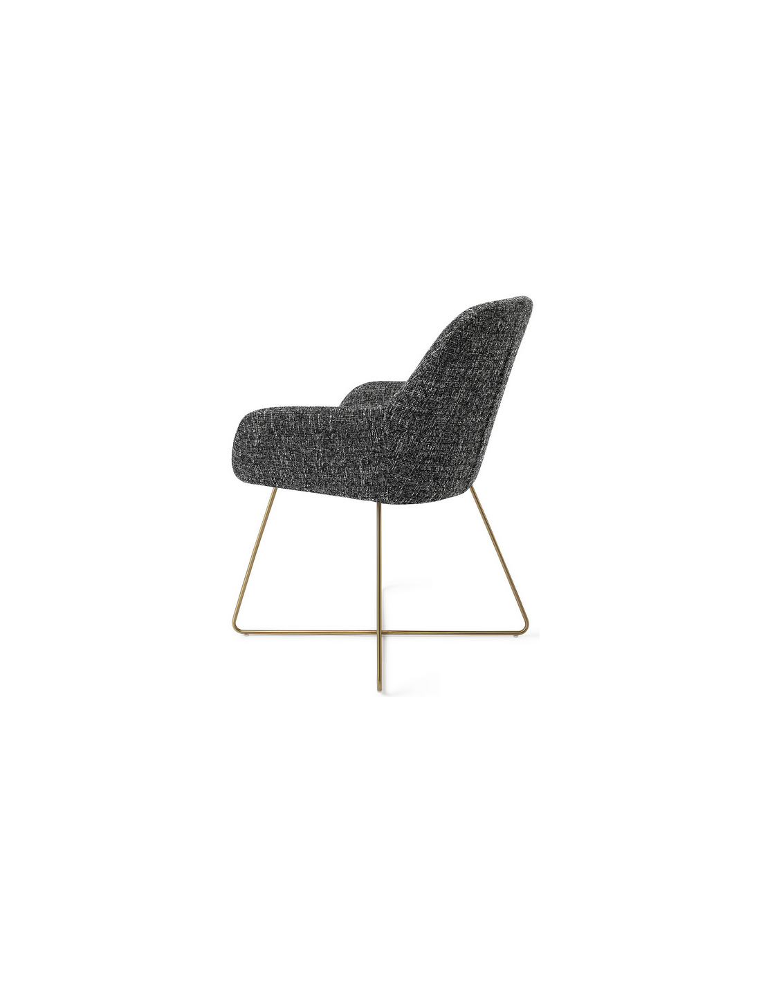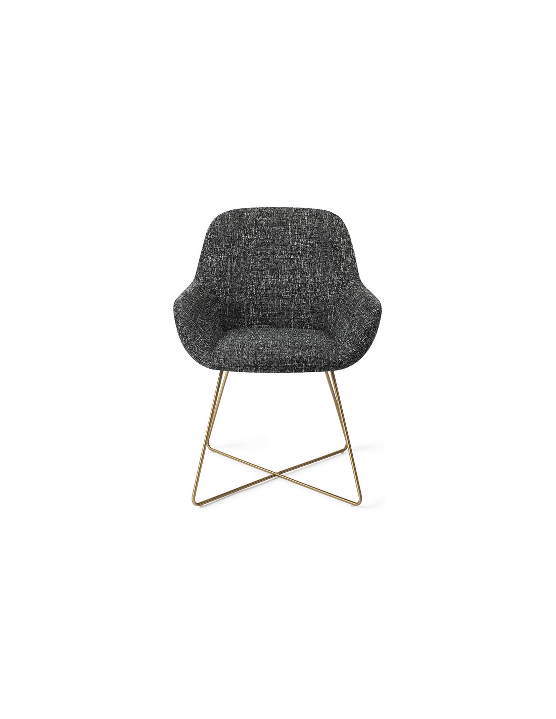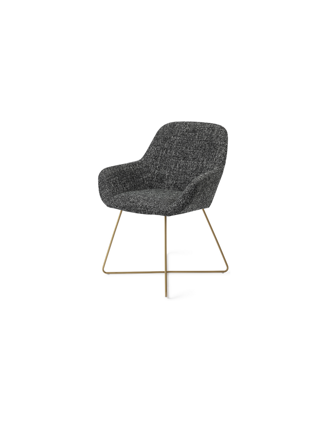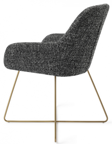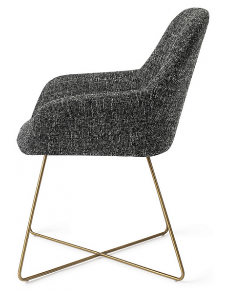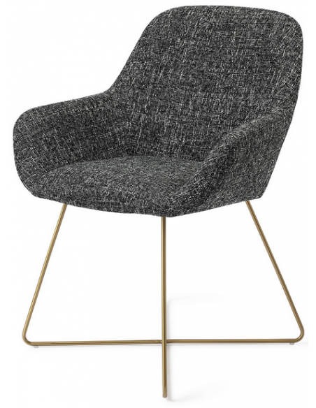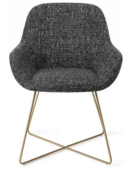 Sæt med 2 Kushi spisebordsstole i et moderne design, fremstillet med sæde i meleret sort polyester og stel i guldfarvet metal. Stolen måler 84 cm i højden over ryggen og med siddehøjde på 48 cm.