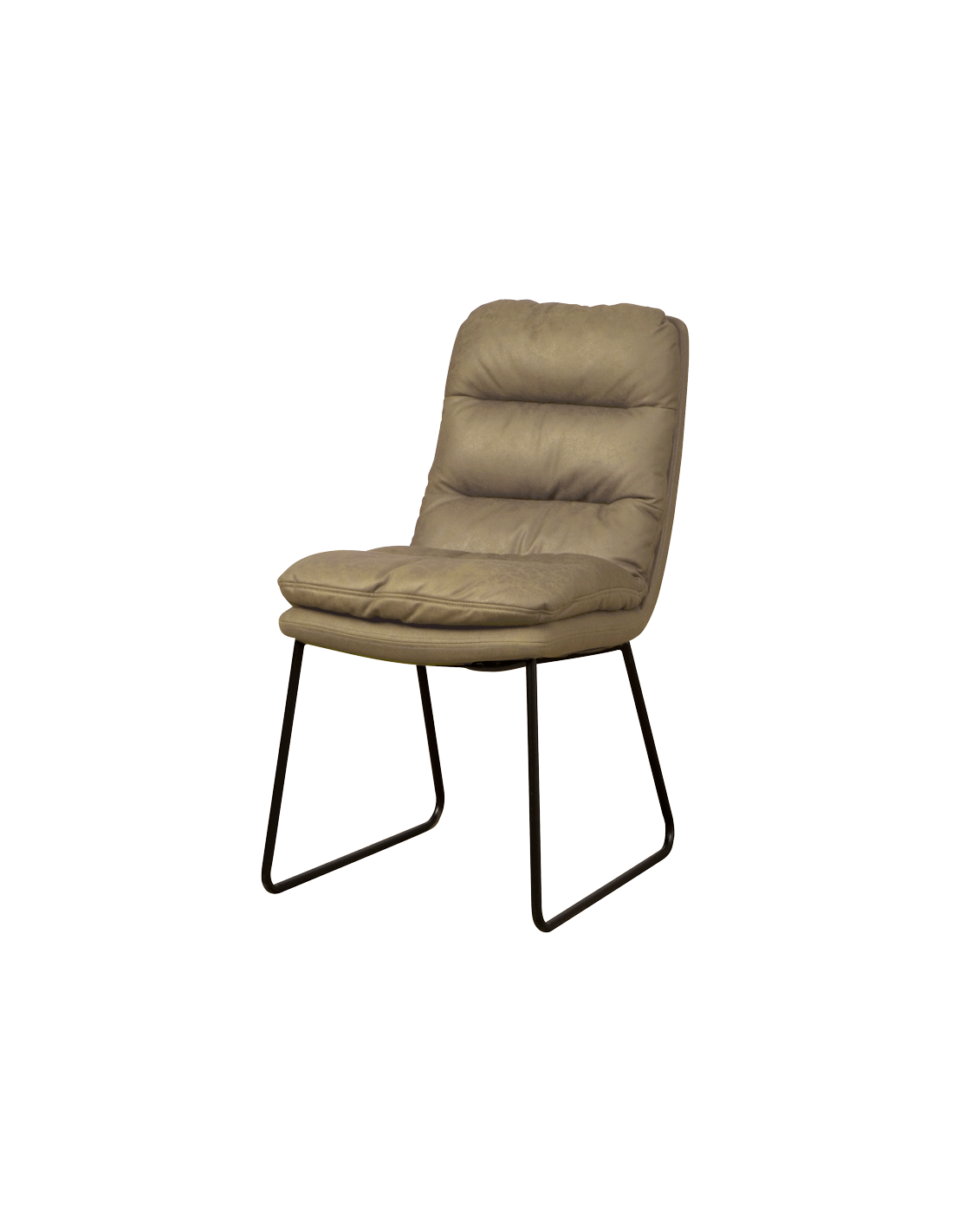Spisebordsstol udført i et industrielt design af vintage grøn microfiber og stel i sortlakeret metal. Stolen måler 90 cm i højden over ryggen og 48 cm i bredden og er polstret med højkvalitets skum.