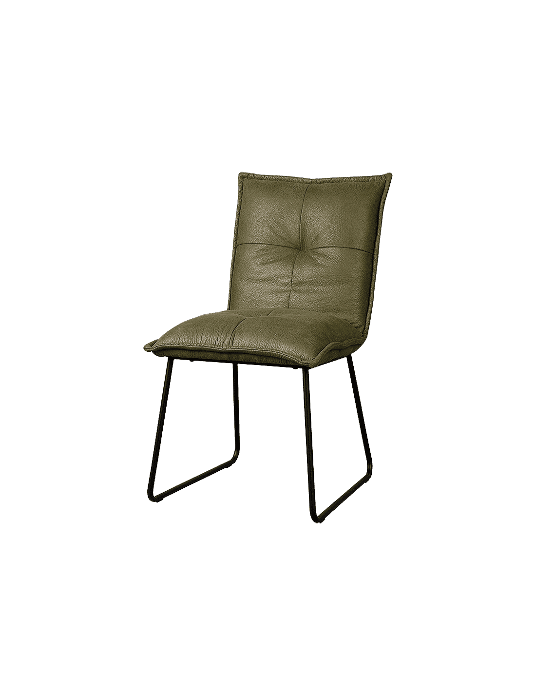 Spisebordsstol udført i et industrielt design af vintage grøn microfiber og stel i sortlakeret metal. Stolen måler 90 cm i højden over ryggen og 49 cm i bredden og er polstret med højkvalitets skum. Bemærk venligst, at der på bag på ryglænet er et håndtag.