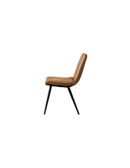 Spisebordsstol udført i et industrielt design af vintage cognac microfiber og stel i sortlakeret metal. Stolen måler 86 cm i højden over ryggen og 46 cm i bredden og er polstret med højkvalitets skum.
