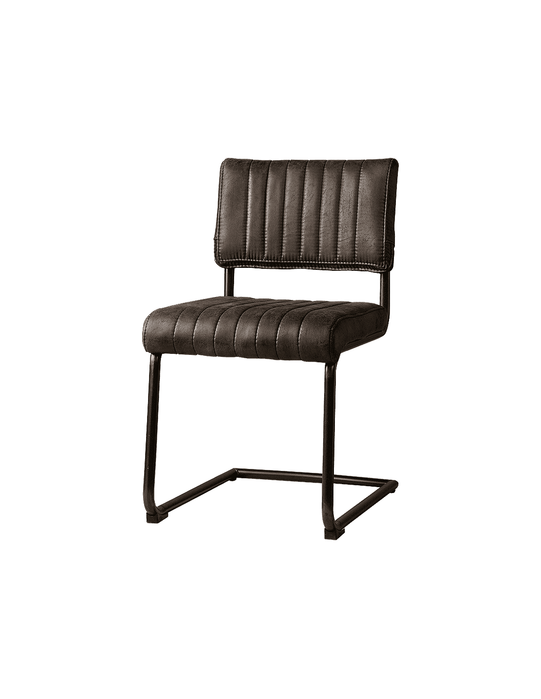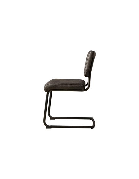 Spisebordsstol udført i et industrielt design af vintage antracit microfiber og stel i sortlakeret metal. Stolen måler 82 cm i højden over ryggen og 46 cm i bredden og er polstret med højkvalitets skum.