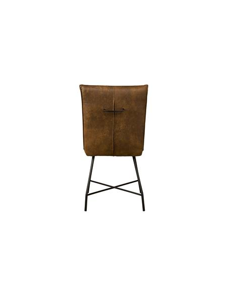 Spisebordsstol udført i et industrielt design af vintage cognac microfiber og stel i sortlakeret metal. Stolen måler 90 cm i højden over ryggen og 49 cm i bredden og er polstret med højkvalitets skum. Bemærk venligst, at der på bag på ryglænet er et håndtag.