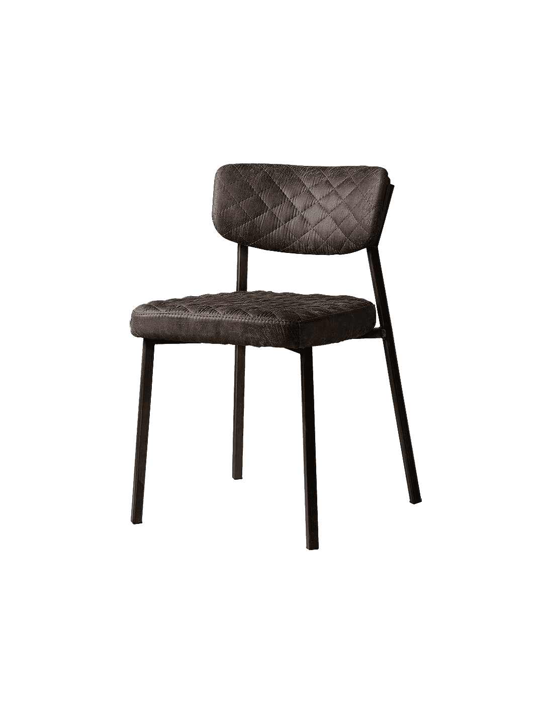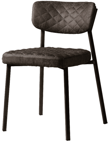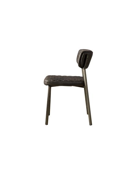Spisebordsstol udført i et industrielt design af vintage antracit microfiber og stel i antik metalgrå lakeret metal. Stolen måler 79 cm i højden over ryggen og 47 cm i bredden og er polstret med højkvalitets skum.