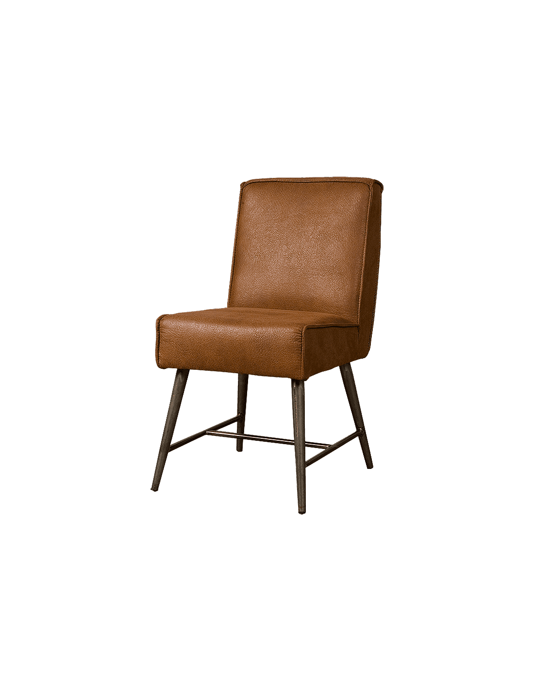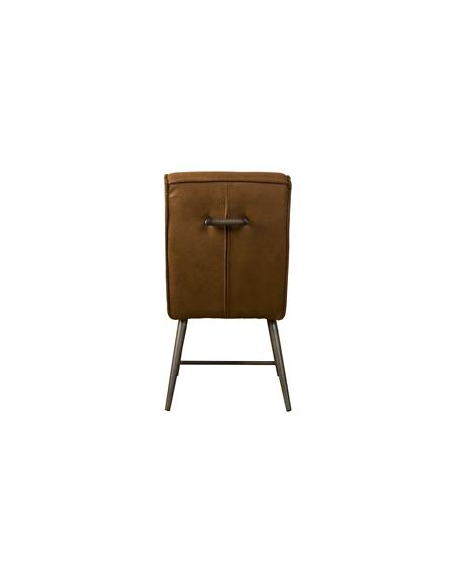 Spisebordsstol udført i et industrielt design af vintage cognac microfiber og stel i antik metalgrå lakeret metal. Stolen måler 86 cm i højden over ryggen og 45 cm i bredden og er polstret med højkvalitets skum. Bemærk venligst, at der på bag på ryglænet er et håndtag.