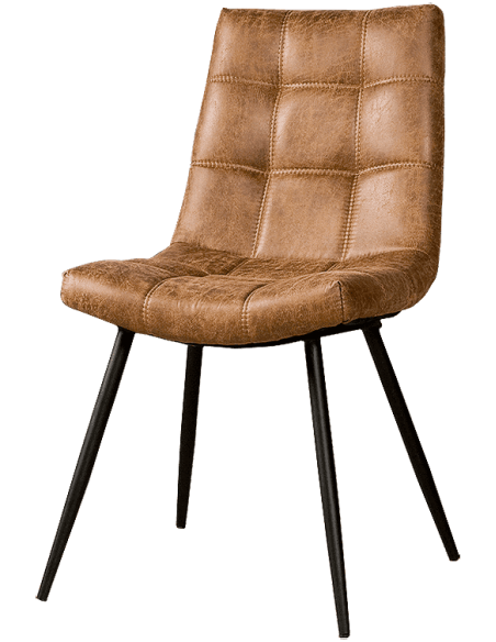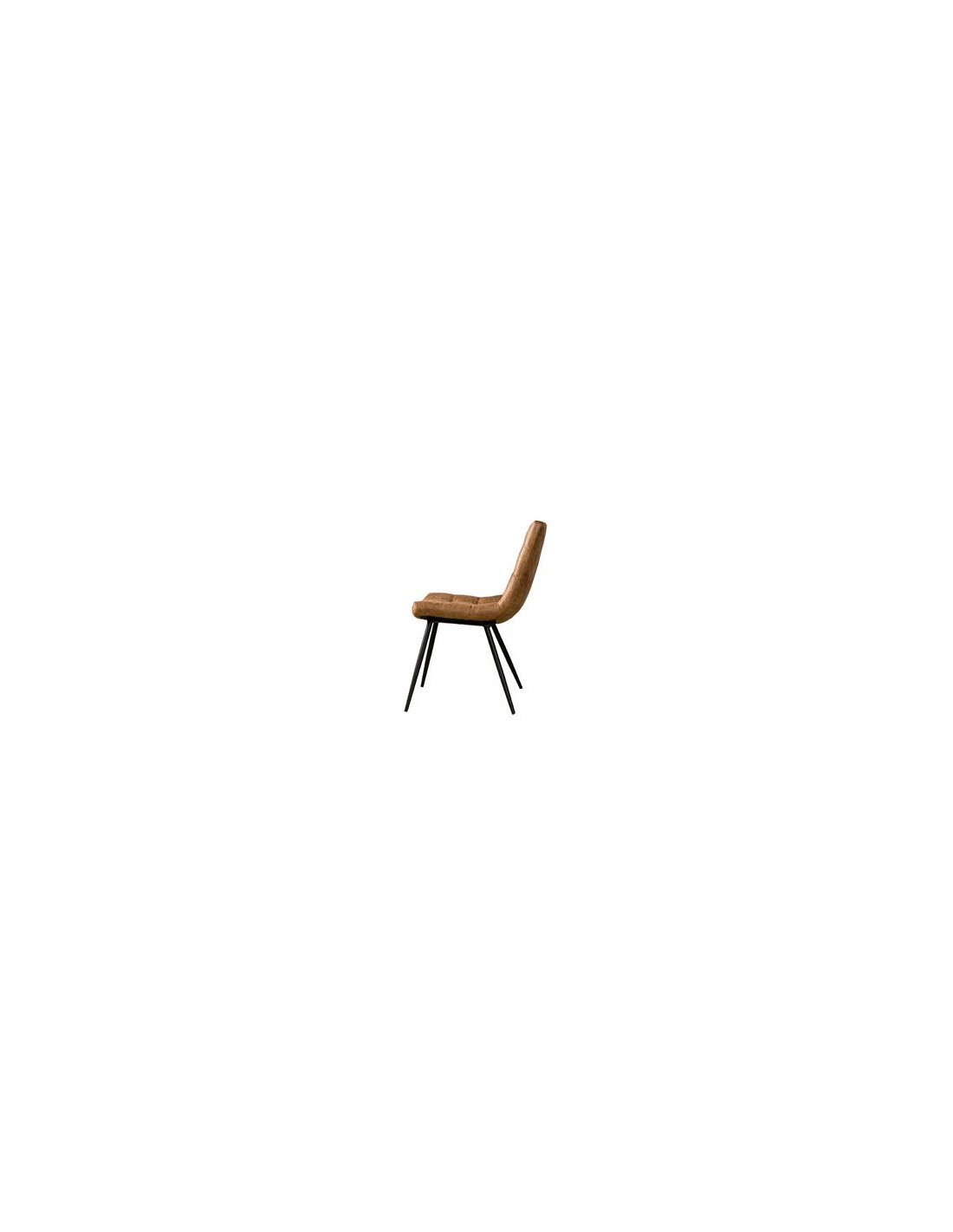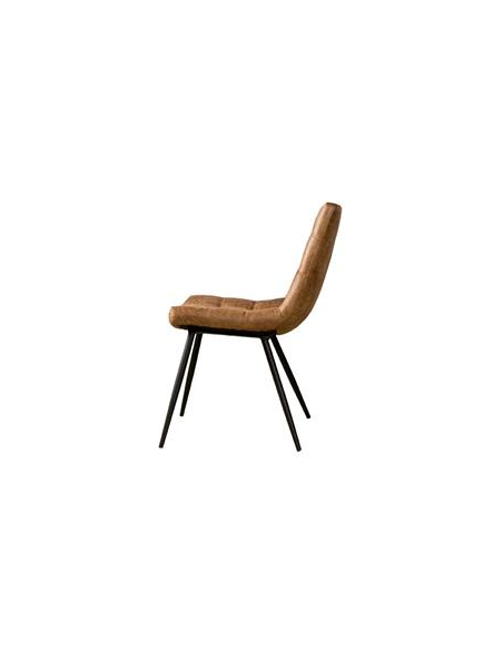 Spisebordsstol udført i et industrielt design af vintage cognac microfiber og stel i sortlakeret metal. Stolen måler 86 cm i højden over ryggen og 46 cm i bredden og er polstret med højkvalitets skum.