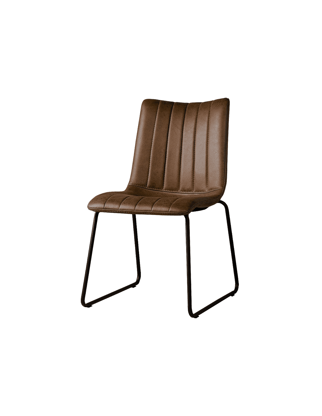 Spisebordsstol udført i et industrielt design af vintage mørkebrun microfiber og stel i sortlakeret metal. Stolen måler 86 cm i højden over ryggen og 49 cm i bredden og er polstret med højkvalitets skum.