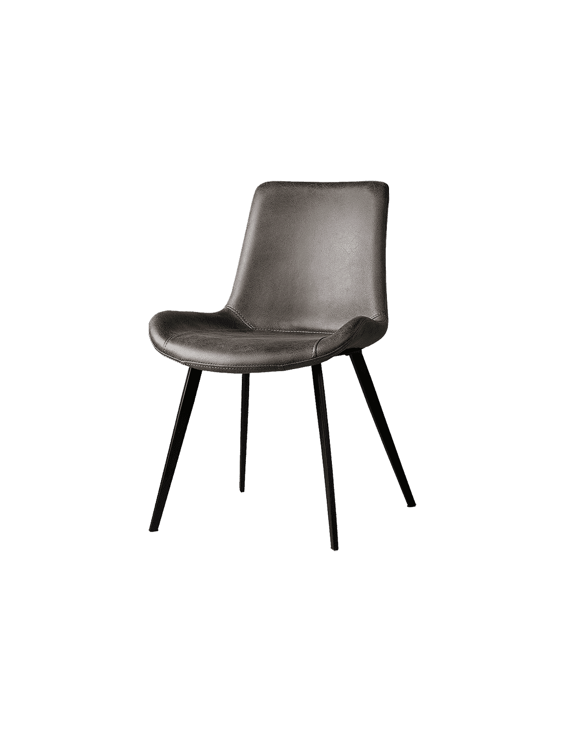 Spisebordsstol udført i et industrielt design af vintage antracit microfiber og stel i sortlakeret metal. Stolen måler 81 cm i højden over ryggen og 53 cm i bredden og er polstret med højkvalitets skum.