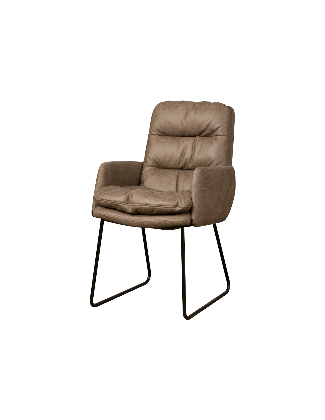 Spisebordsstol udført i et industrielt design af vintage taupe microfiber og stel i sortlakeret metal. Stolen måler 90 cm i højden over ryggen og 59 cm i bredden og er polstret med højkvalitets skum.