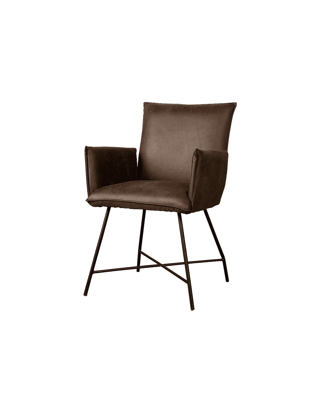 Spisebordsstol udført i et industrielt design af vintage brun microfiber og stel i sortlakeret metal. Stolen måler 90 cm i højden over ryggen og 59 cm i bredden og er polstret med højkvalitets skum. Bemærk venligst, at der på bag på ryglænet er et håndtag.