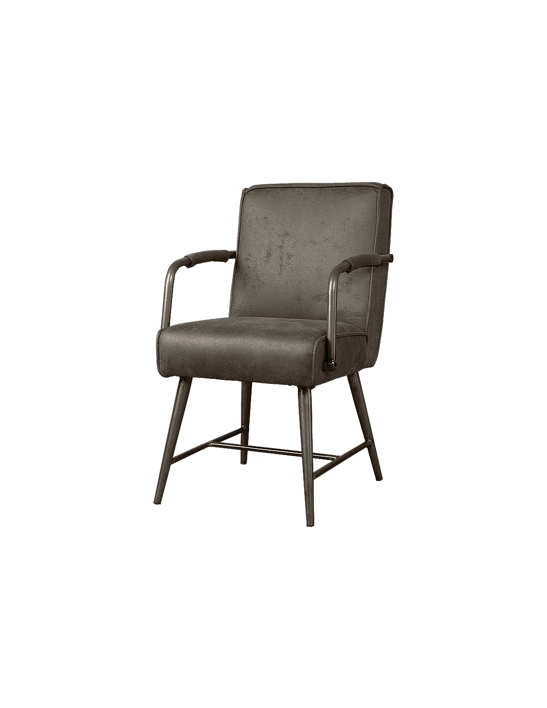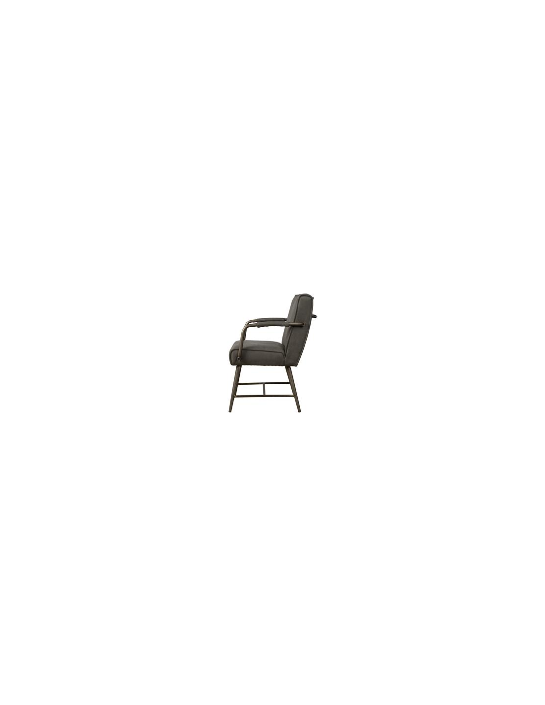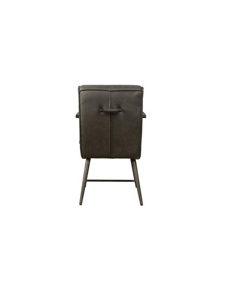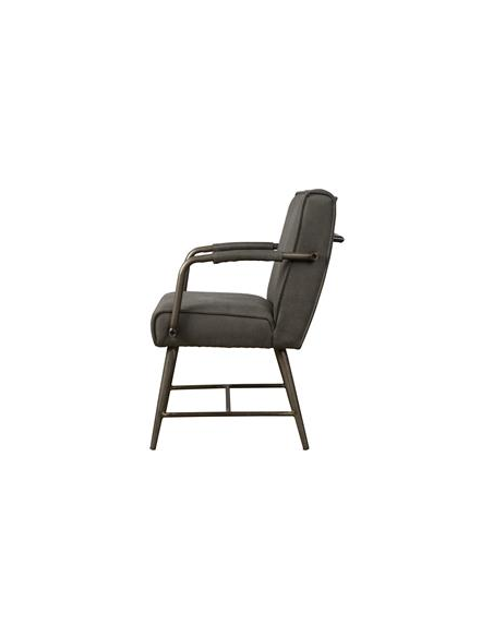 Spisebordsstol udført i et industrielt design af vintage grå microfiber og stel i antik metalgrå lakeret metal. Stolen måler 86 cm i højden over ryggen og 51 cm i bredden og er polstret med højkvalitets skum. Bemærk venligst, at der på bag på ryglænet er et håndtag.