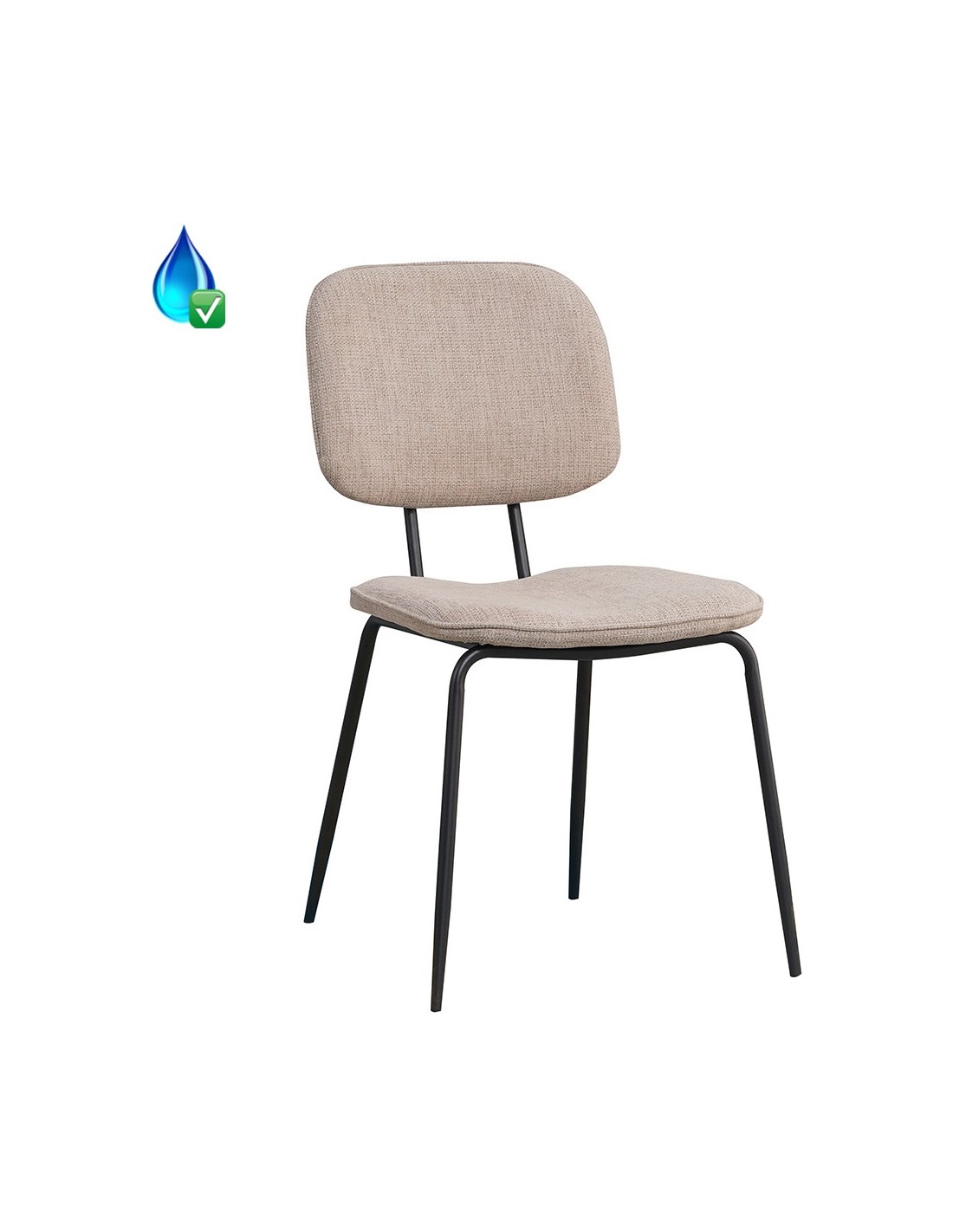 Ivar spisebordsstol udført i et moderne design, fremstillet med sæde i taupefarvet genanvendt polyester og ben i sortlakeret metal. Stolen måler 83 cm i højden over ryggen og med siddehøjde på 47 cm. Tekstilen er vandafvisende og med martindale 50.000, som gør stolen særligt anvendelig til restaurationer/spisesteder.