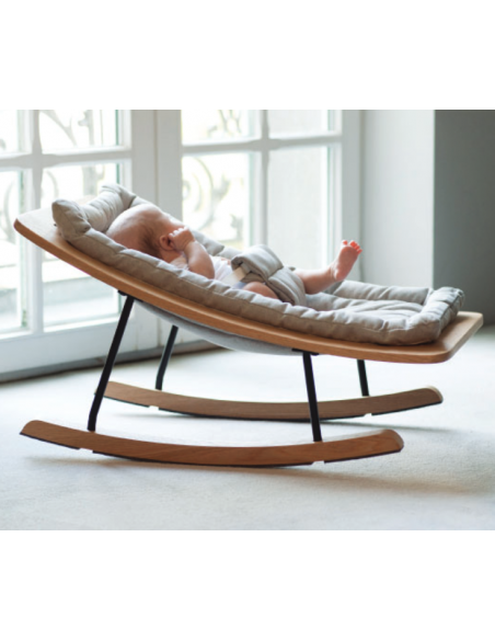 Rocking Baby Bouncer fra Belgiske Quax, udført i et moderne design og fremstillet i lækre materialer. Stolen måler 41 cm i højden og kommer med blød hynde med sikkerhedsspænde.