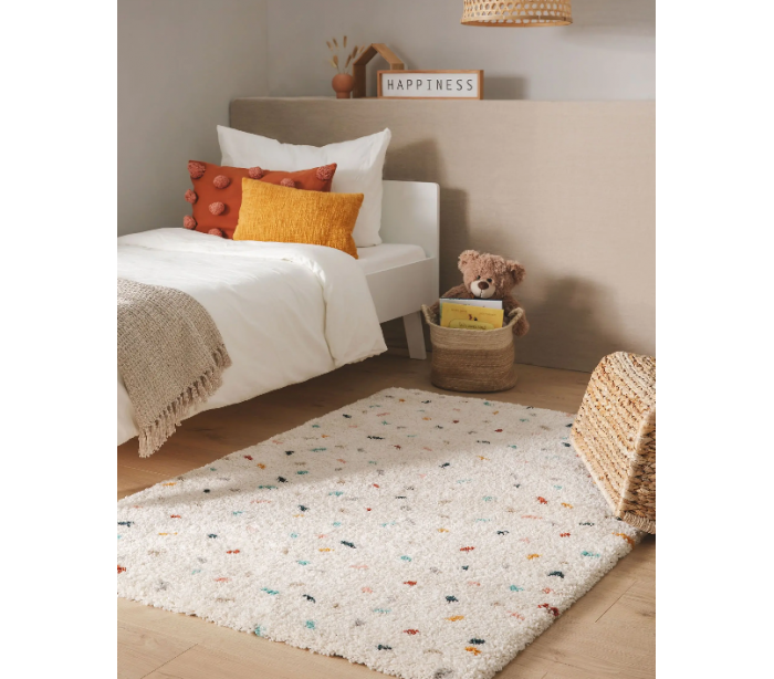 Dekorativt løst tæppe til børneværelset eller stuen, udført i et design af 100% polypropylene. Tæppet måler 240 x 340 cm i bredde og dybde.