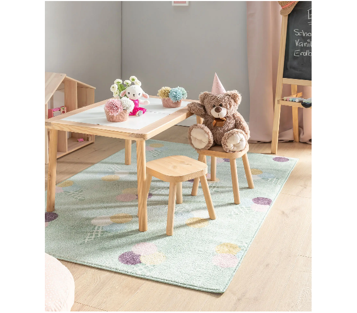 Dekorativt løst tæppe til børneværelset eller stuen, udført i et design af 100% polypropylene. Tæppet måler 160 x 230 cm i bredde og dybde.