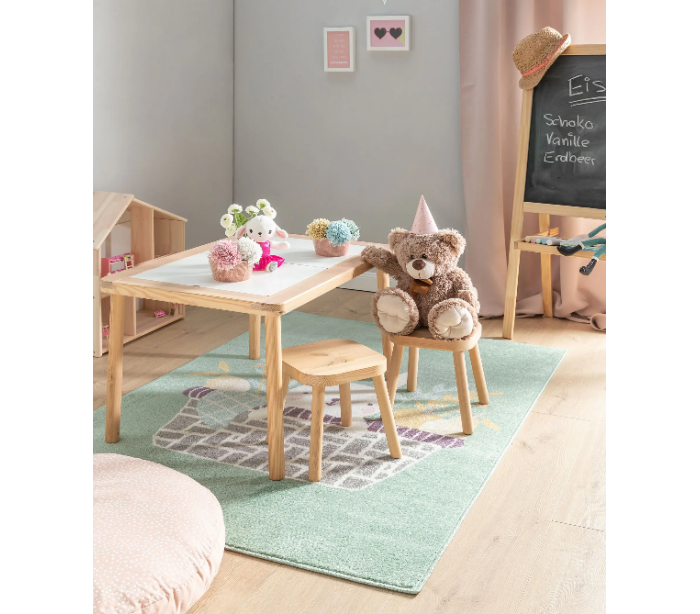 Dekorativt løst tæppe til børneværelset eller stuen, udført i et design af 100% polypropylene. Tæppet måler 120 x 170 cm i bredde og dybde.